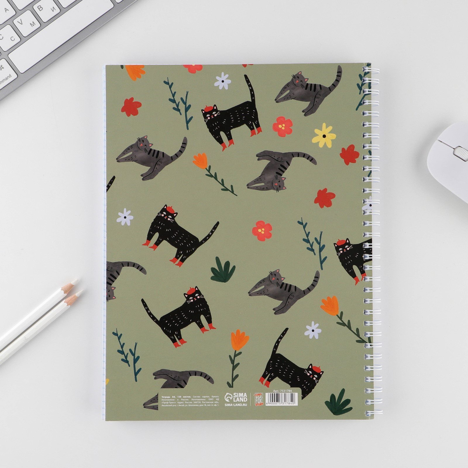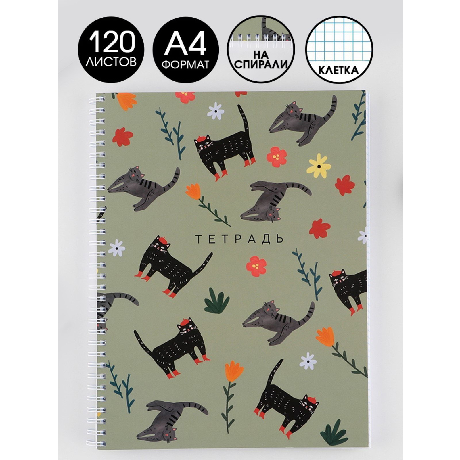 Тетрадь в клетку А4, 120 л, на спирали, блок №1 "Котики", ArtFox STUDY, Россия
