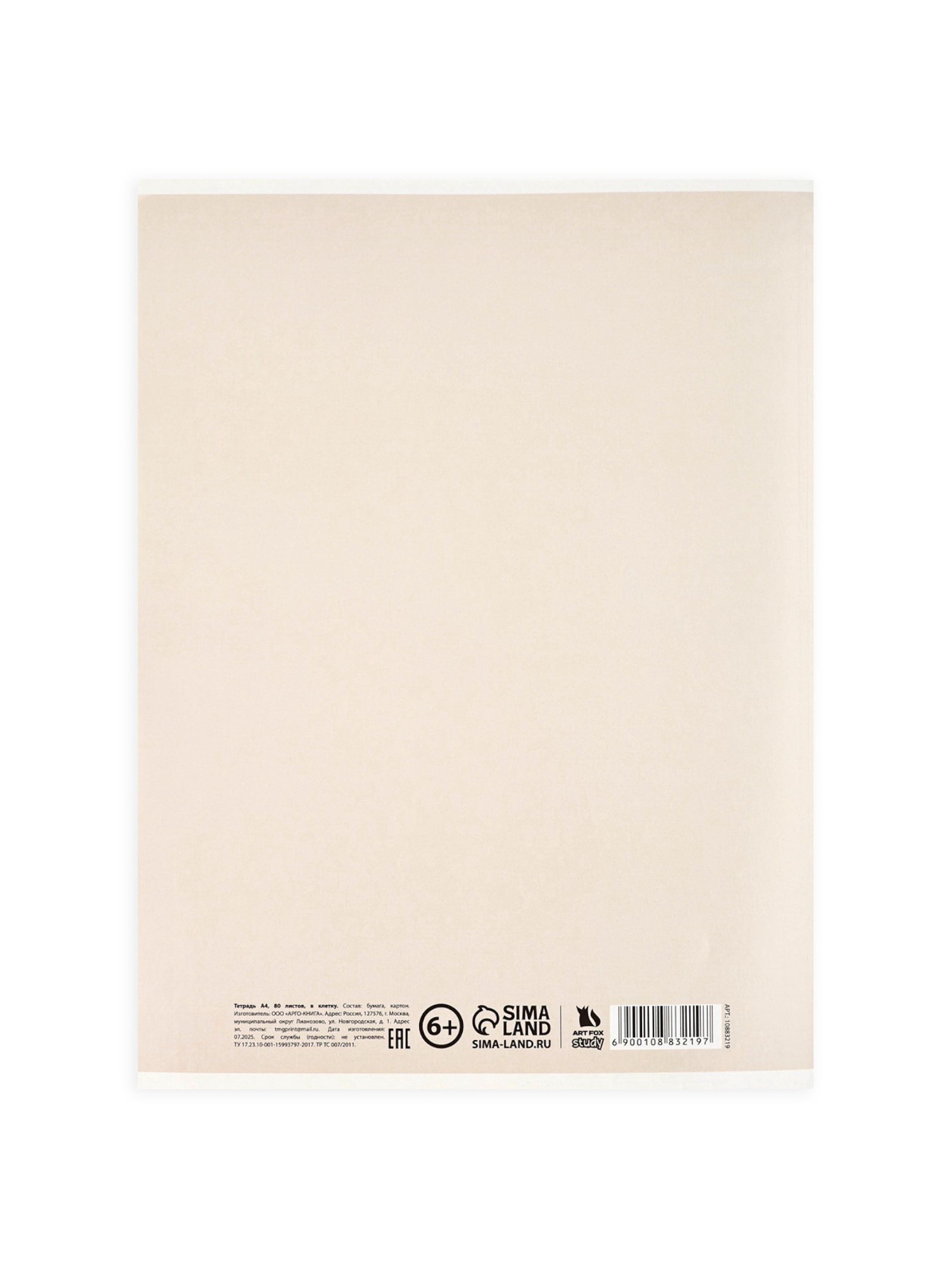 Тетрадь в клетку, А4, 80 л, на скрепке, блок №1 "Почерк", ArtFox STUDY, Россия