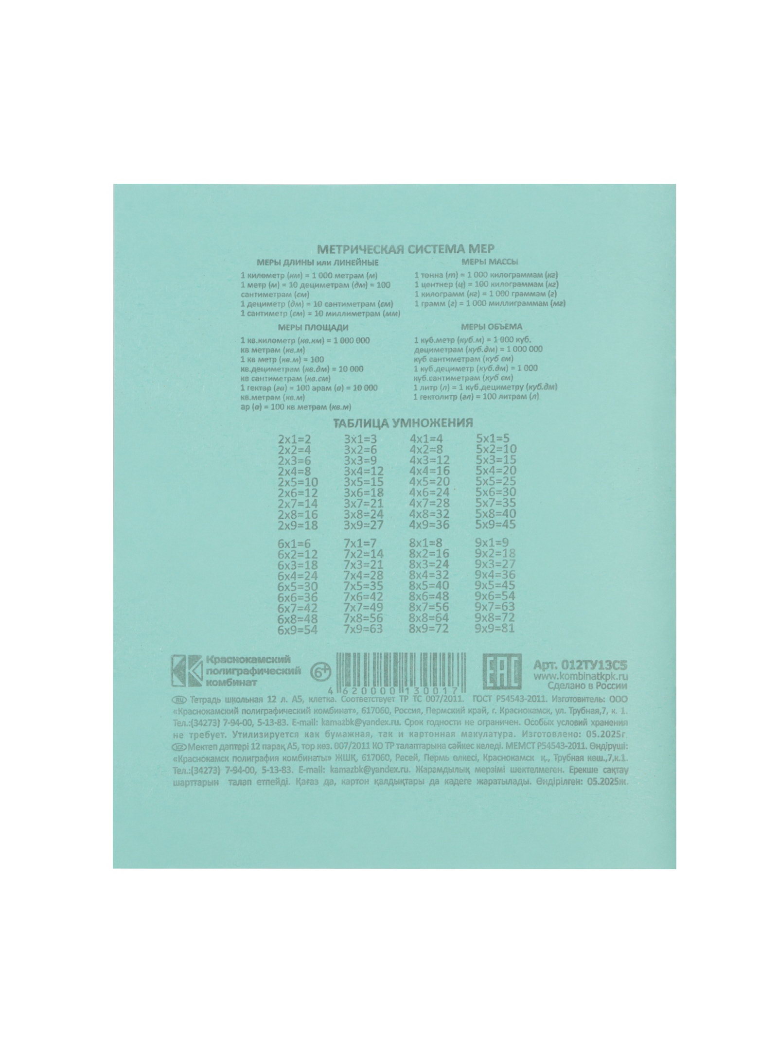 Размер упаковки: 16.5 x 0.2 x 20.5 см. Материал обложки: Бумага Тип скрепления: На скобе Линовка блока: Клетка Количество листов: 12 Формат: А5 Белизна блока, %: 75-80 tnved: 4820200000 Дизайн обложки: Однотонный Для кого: Унисекс Плотность бумаги, г/кв.м: 55 Европодвес: Нет Температурное ограничение транспортировки: Да Цвет: Зелёный Набор: Нет На протяжении всего обучения в школе главным помощником для учащегося является тетрадь! Мы предлагаем огромный выбор различных видов и дизайнов. Тетрадь школьная изготавливается из качественной бумаги в формате А5 с разным количеством листов. Оригинальные рисунки, насыщенные цвета и запоминающиеся принты будут оценены каждым учеником. Подходит для использования в школах, высших учебных заведениях, для дома и офиса. | ||