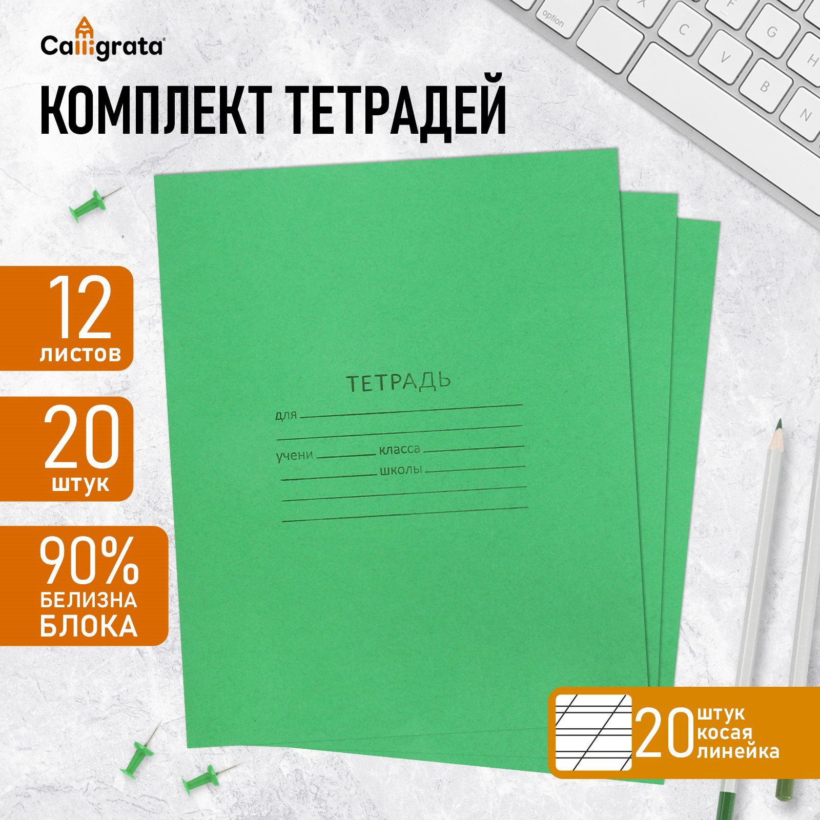 Набор тетрадей "Зелёная обложка" 20 штук, 12 листов в косую линейку, плотность обложки 60 г/?2, КПК, Россия