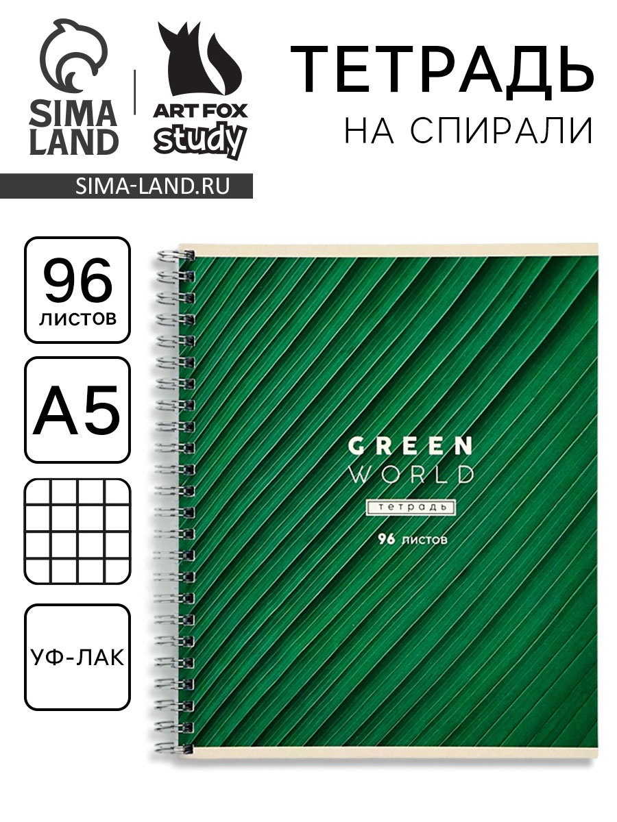 Тетрадь в клетку, 96 л, А5, на спирали, блок №1, Green World, ArtFox STUDY, Россия