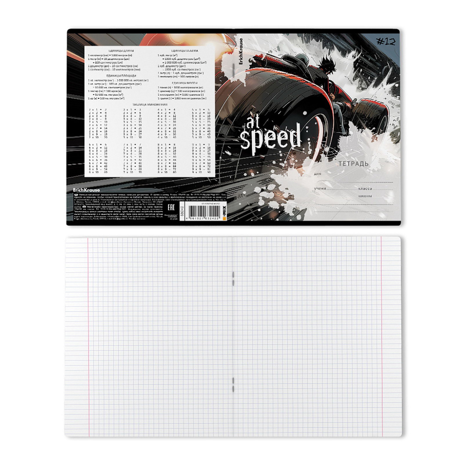Тетрадь 12 листов в клетку Big Wheels, 60 г/?2, обложка мелованный картон, МИКС, 0.2x17x20.3 см., ErichKrause, Россия