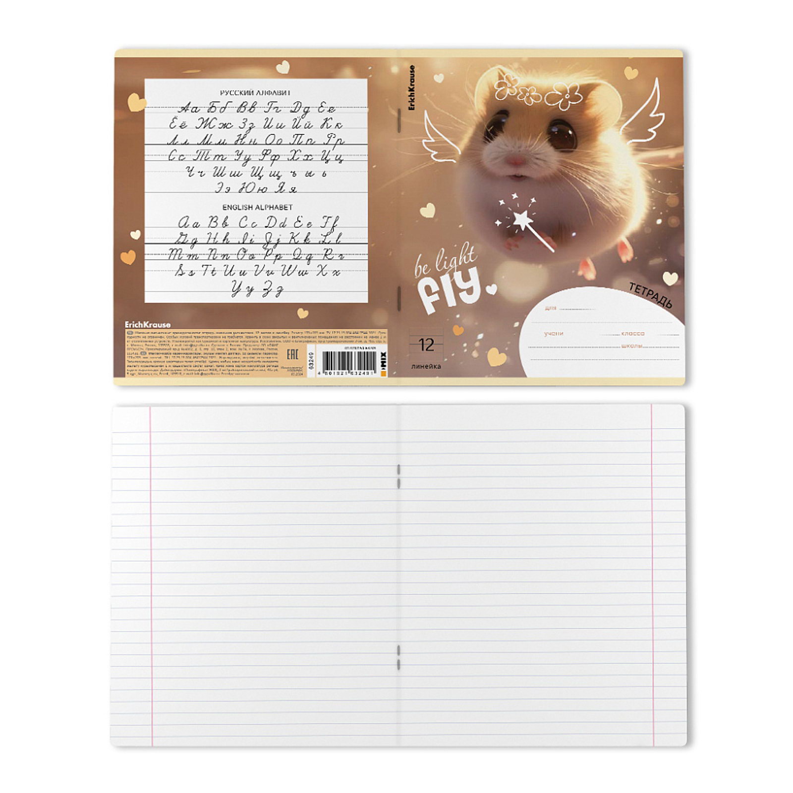 Тетрадь 12 листов в линейку Fluffy, 60 г/?2, обложка мелованный картон, МИКС, 0.2x17x20.3 см., ErichKrause, Россия