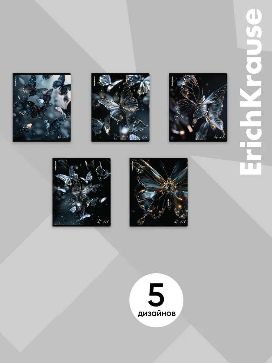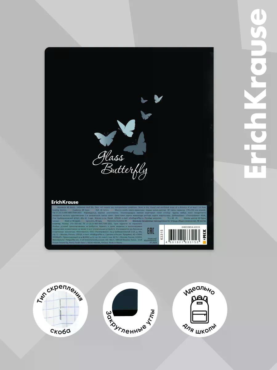Тетрадь 48 листов в клетку, Glass Butterflies, 60 г/?2, обложка мелованный картон, блок офсет, 0.5x17x20.3 см., ErichKrause, Россия