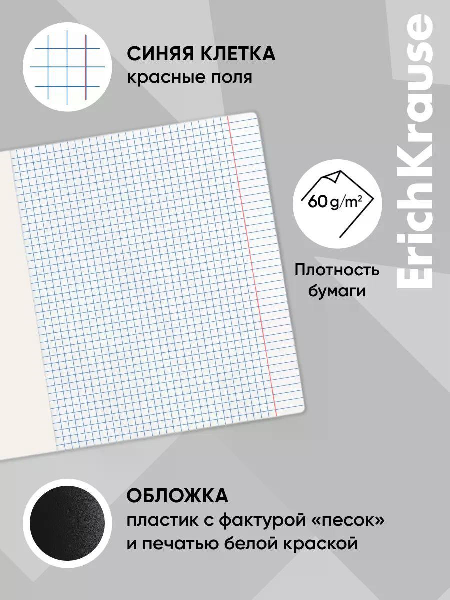 Размер упаковки: 20.5 x 0.5 x 17 см. tnved: 4820200000 Температурное ограничение: Нет Тетрадь общая ученическая формата А5+ (170x203 мм). Обложка выполнена из высококачественного износостойкого матового пластика с фактурой "песок" и печатью белой краской. В блоке 48 листов в клетку. Бумага офсетная плотностью 60 г/м2. Цвет линовки синий. Скругленные уголки обложки и блока. Тип скрепления скоба. Характеристики: Формат: А5+ Тип скрепления: скоба Количество листов: 48 Линовка: клетка Материал обложки: пластик | ||