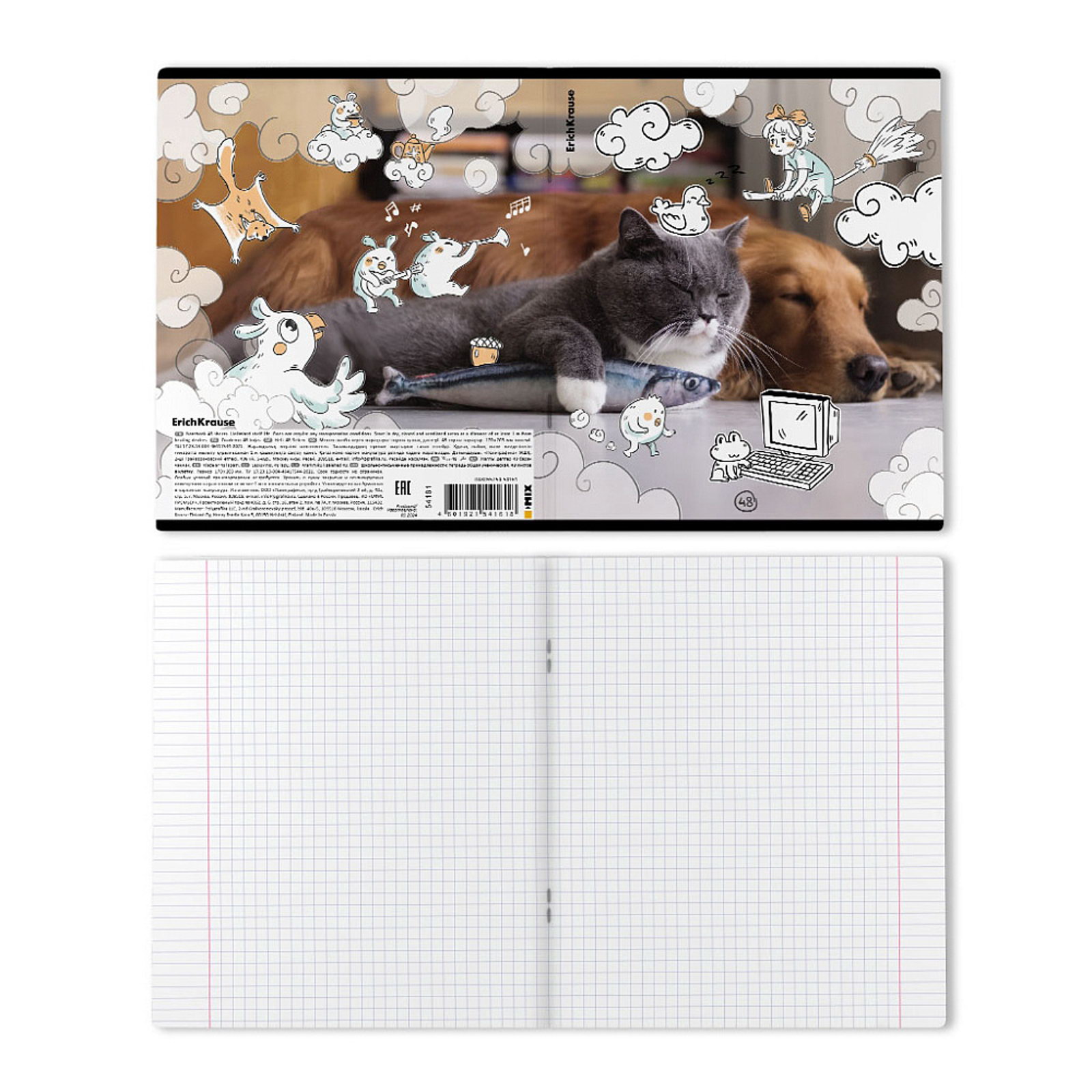 Тетрадь 48 листов в клетку Dream Cat, 60 г/?2, обложка мелованный картон, МИКС, 0.7x17x20.3 см., ErichKrause, Россия