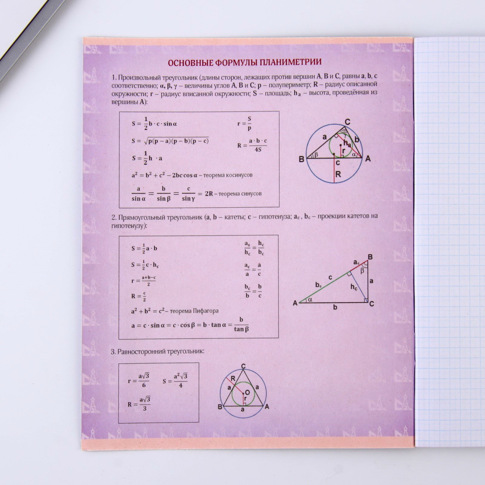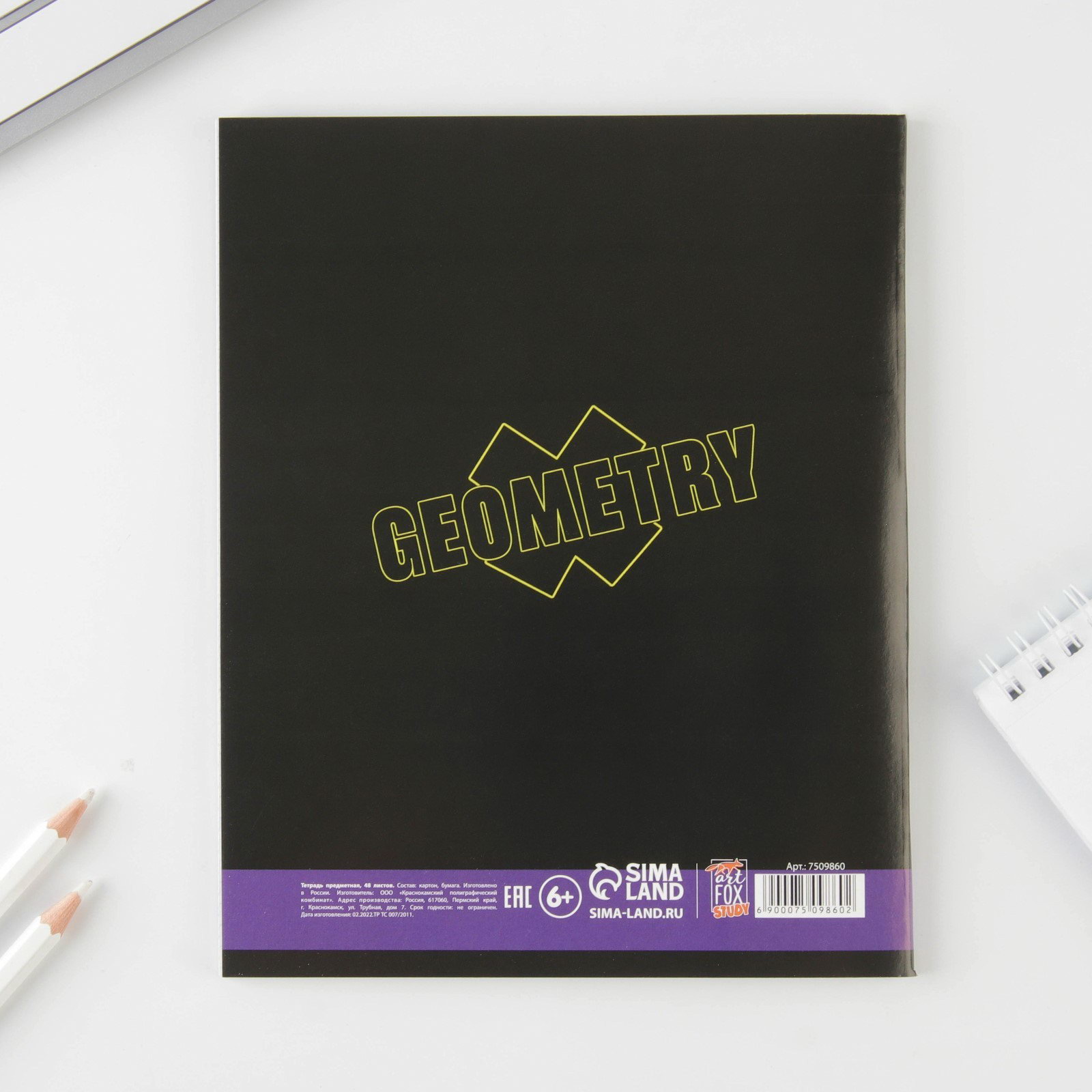 Размер упаковки: 16.2 x 20.2 x 0.5 см. Тип скрепления: На скобе Вид обложки: Мягкая Формат: А5 Плотность, г/?2: 65 Дизайн обложки: С рисунком Набор: Нет Материал обложки: Картон tnved: 4820103000 Рисунок: Нет Белизна блока, %: 95-100 Отделка: Без отделки Количество листов: 48 Школьный предмет: Геометрия Линовка блока: Клетка Предметная тетрадь торговой марки ArtFox STUDY- незаменимый помощник в учёбе!