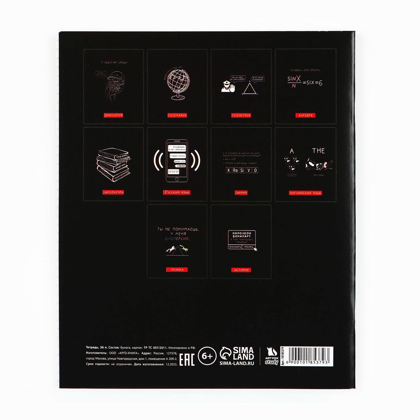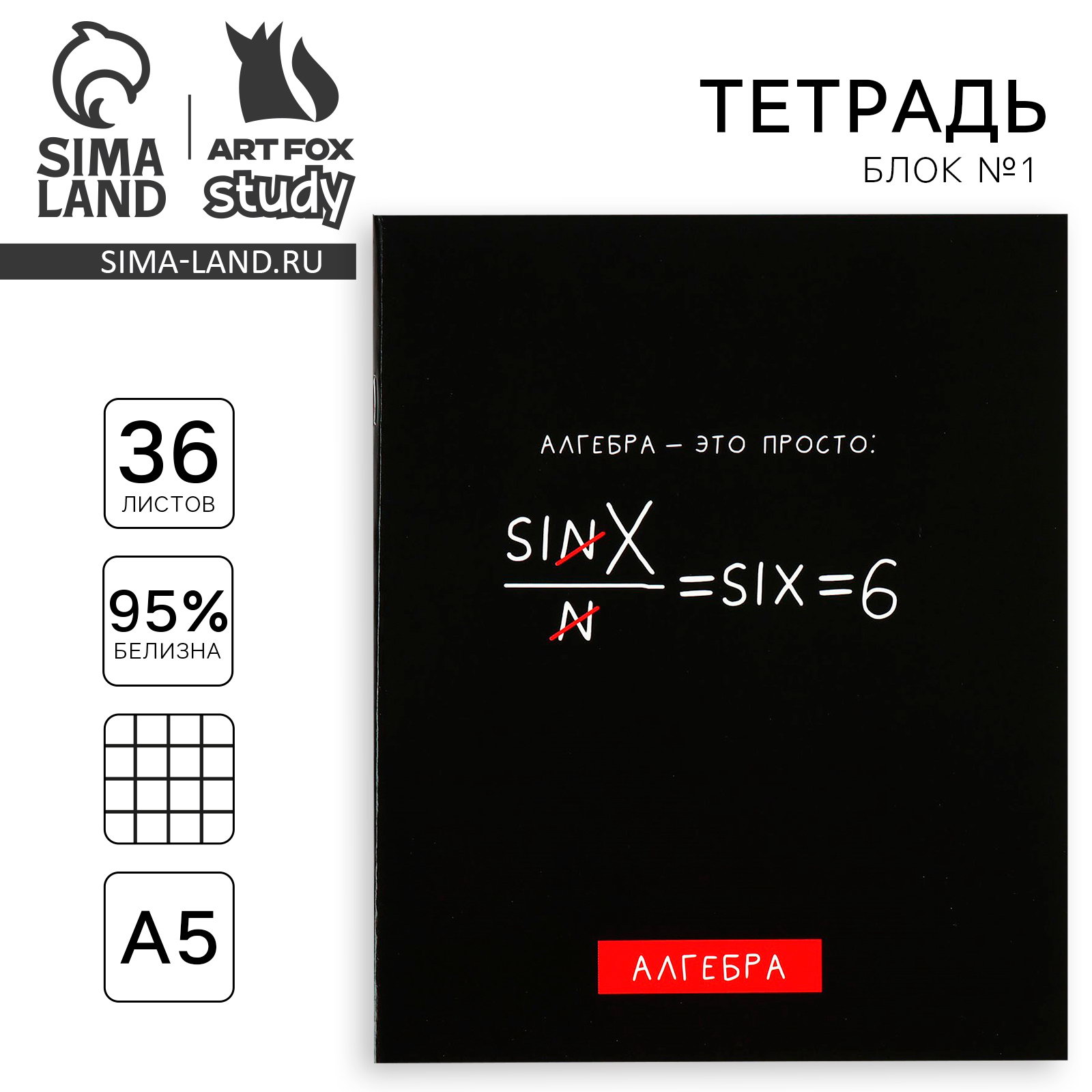 Тетрадь в клетку, предметная, 36 л, на скрепке, блок №1 "Черный фон. Алгебра", ArtFox STUDY, Россия