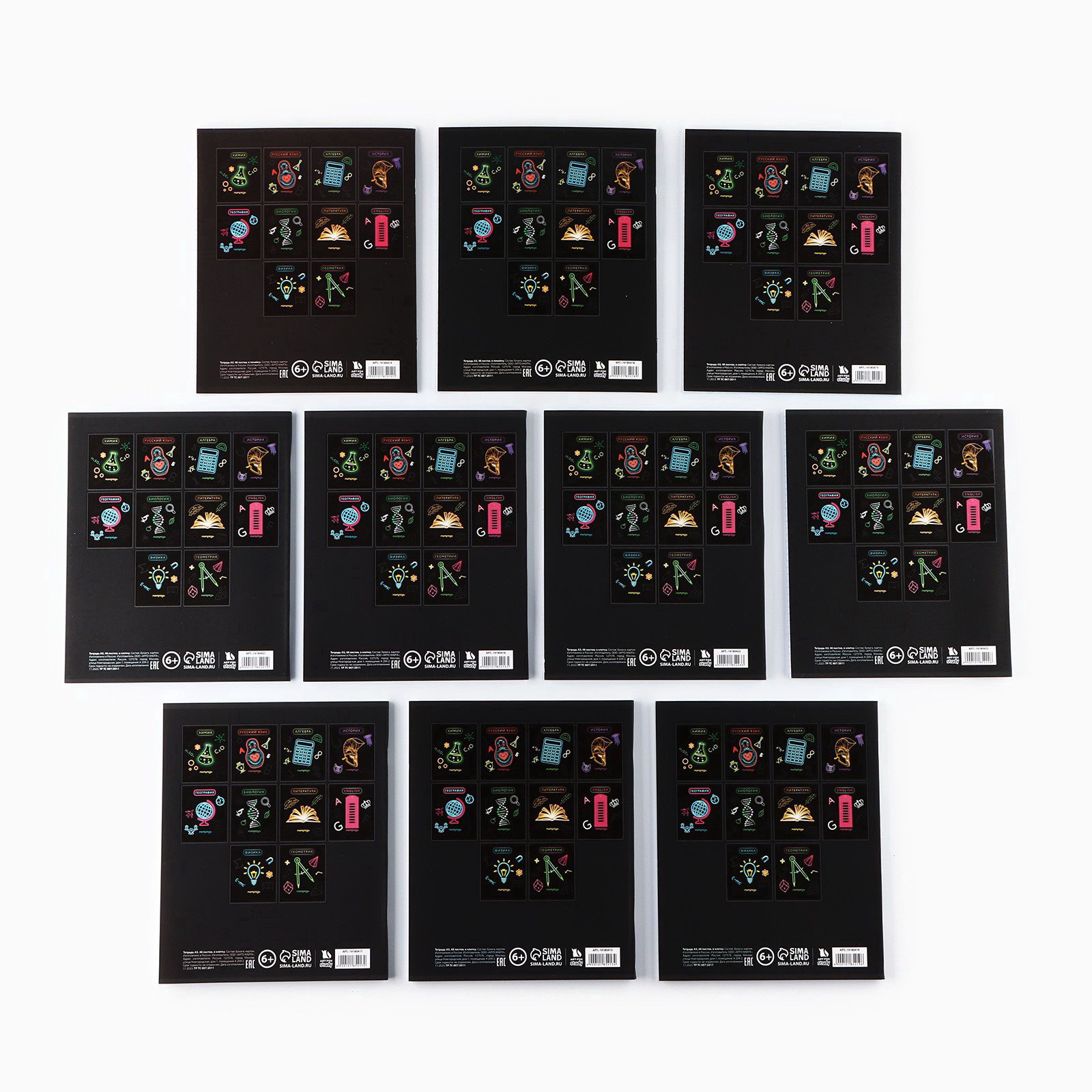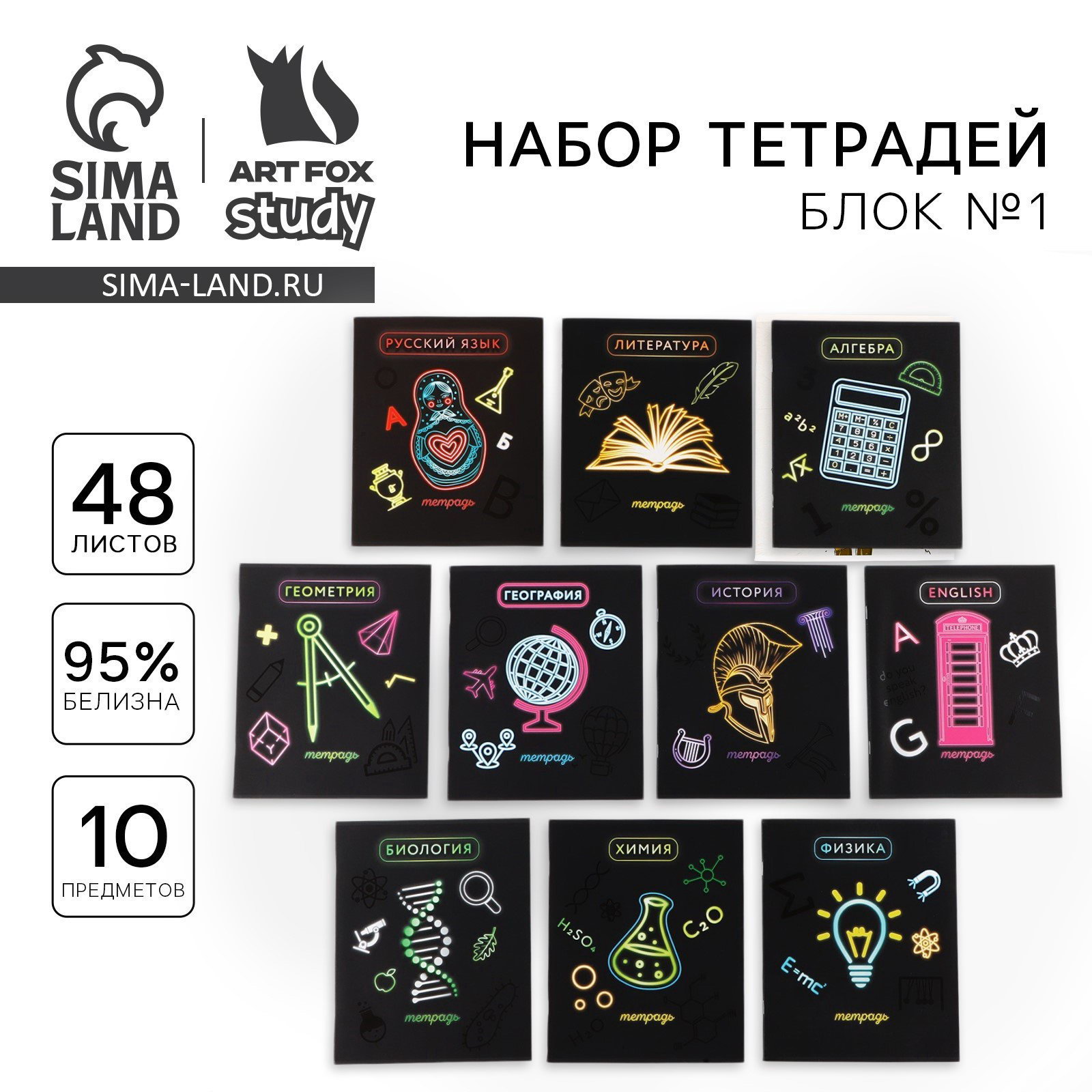 Тетради предметные, 48 л, набор из 10 шт., блок №1, софт тач лам, 3D лак "Неон", ArtFox STUDY, Россия