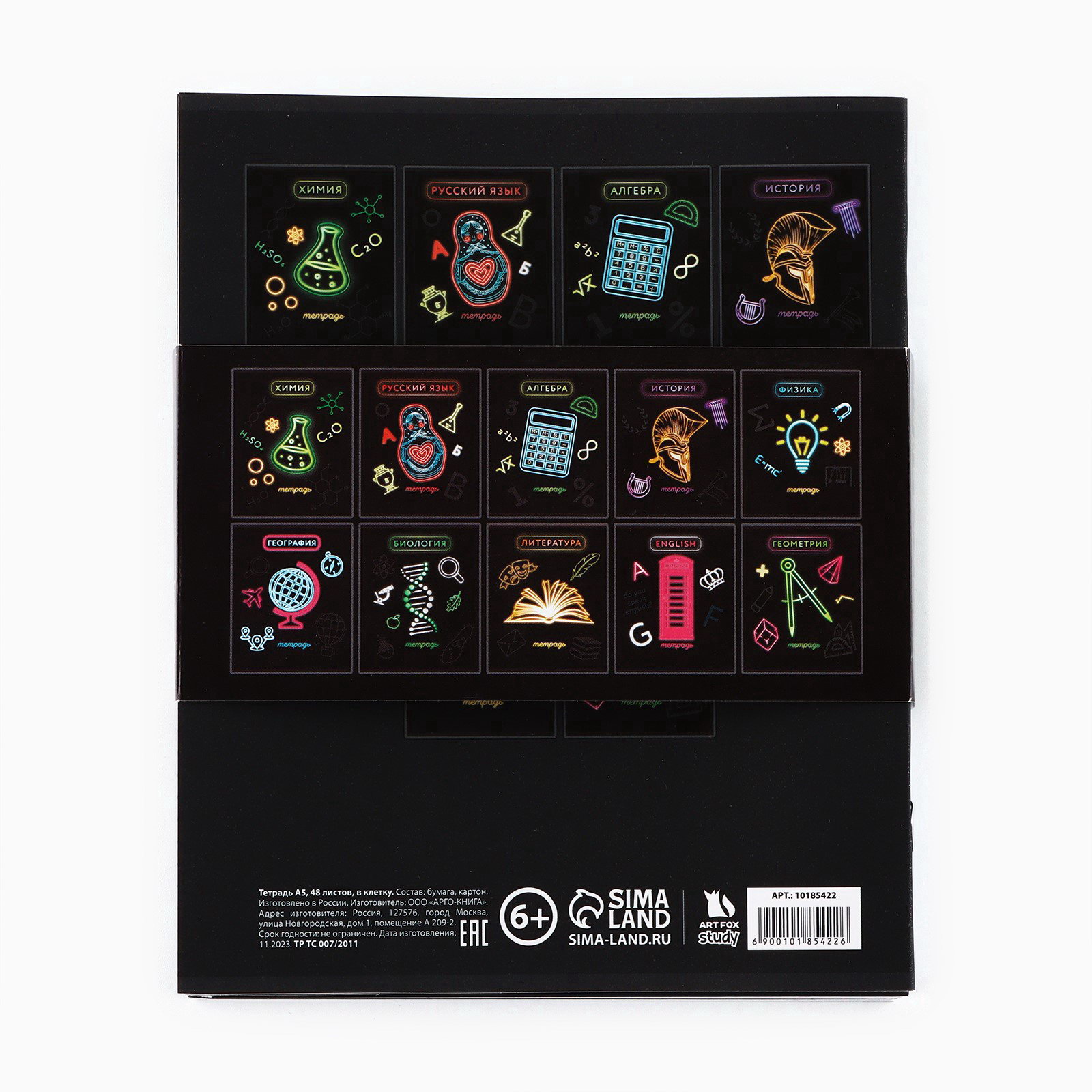 Школьный предмет: Алгебра, Английский язык, Биология, География, Геометрия, История, Литература, Русский язык, Физика, Химия Линовка блока: Клетка, Линейка Отделка: 3D-лак, Ламинация Soft Touch Размер упаковки: 16.5 x 20.5 x 5.5 см. Плотность, г/?2: 65 Количество листов: 48 Вид обложки: Мягкая Белизна блока, %: 95-100 Тип скрепления: На скобе Материал обложки: Картон Формат: А5 Набор: Да Дизайн обложки: С рисунком tnved: 4820103000 tnved: 4820103000 Рисунок: Да Комплект тетрадей идеальный выбор для тех, кто ценит качество и комфорт в процессе обучения. В наборе представлены тетради с различными видами линовки: клетка и линейка. Это позволяет выбрать оптимальный вариант для разных задач и предпочтений. Кроме того, тетради имеют плотную обложку и удобный формат, что делает их использование максимально благоприятным.