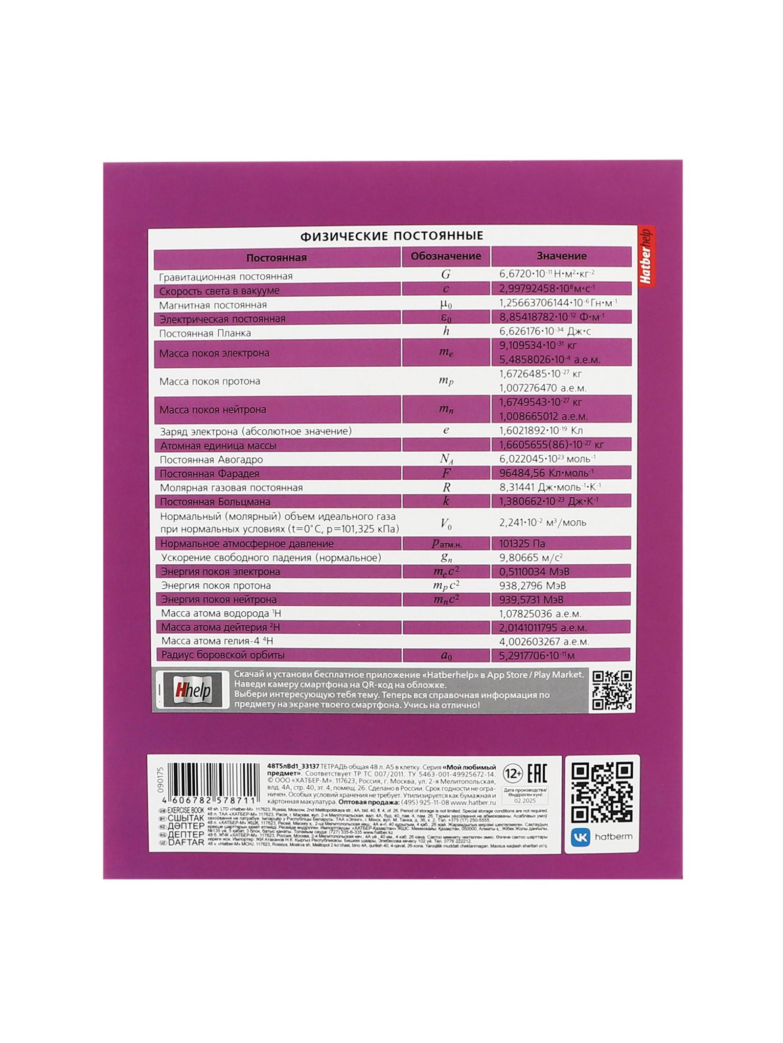 Размер упаковки: 16.5 x 0.5 x 20.5 см. Температурное ограничение: Нет Реестр Минпромторга: Нет Материал обложки: Мелованный картон Отделка: Ламинация Soft Touch Количество листов: 48 Белизна блока, %: 95-100 Линовка блока: Клетка Набор: Нет Школьный предмет: Физика Школьный предмет: Физика tnved: 4820200000 Рисунок: Да Эта тетрадь по физике станет надежным помощником в освоении законов природы. Она создана для тех, кто ценит точность: здесь удобно записывать формулы, чертить схемы и решать задачи. Встроенный справочник с основной информацией, чтобы вы могли сосредоточиться на сути вычислений. Главные характеристики