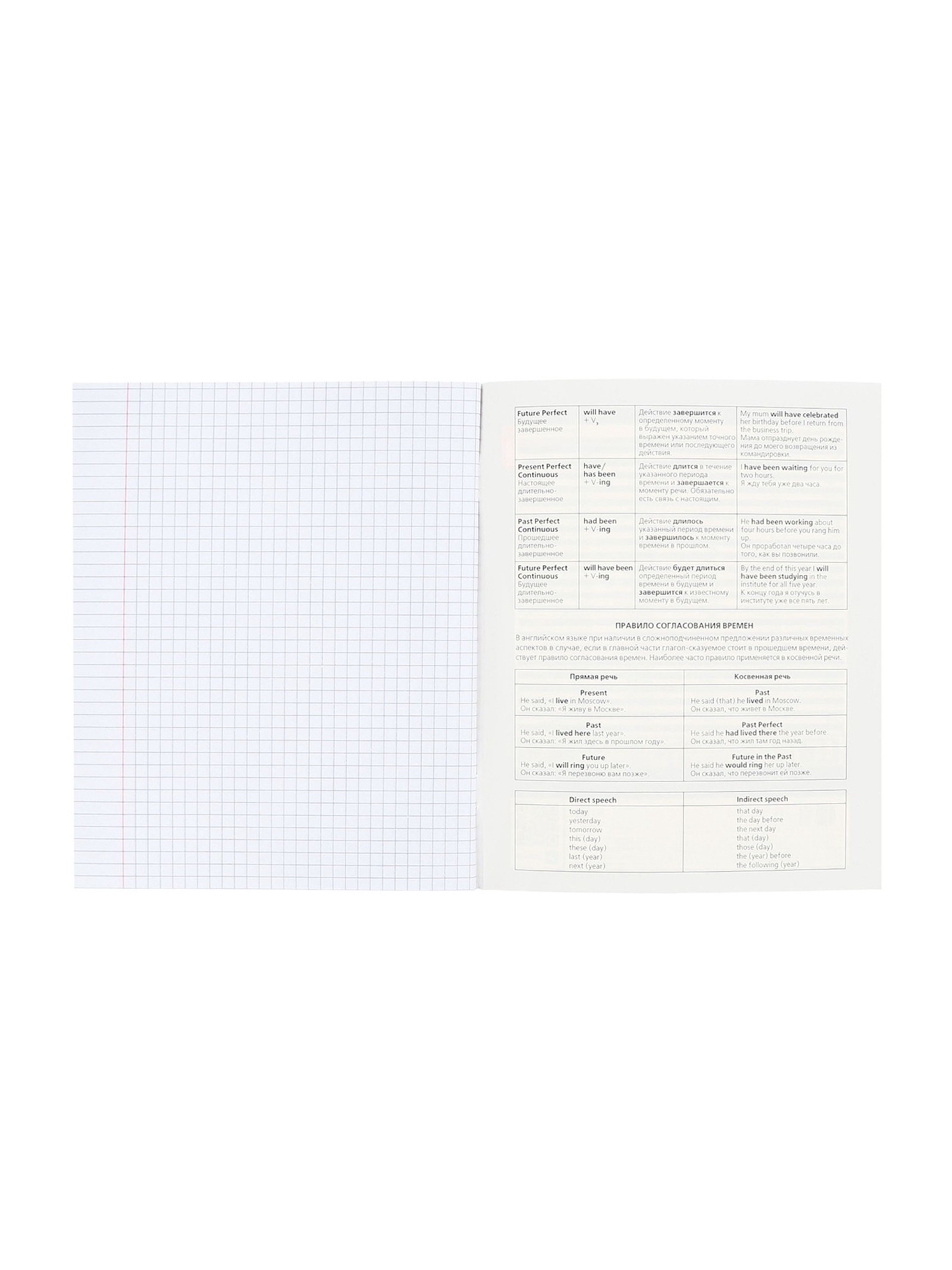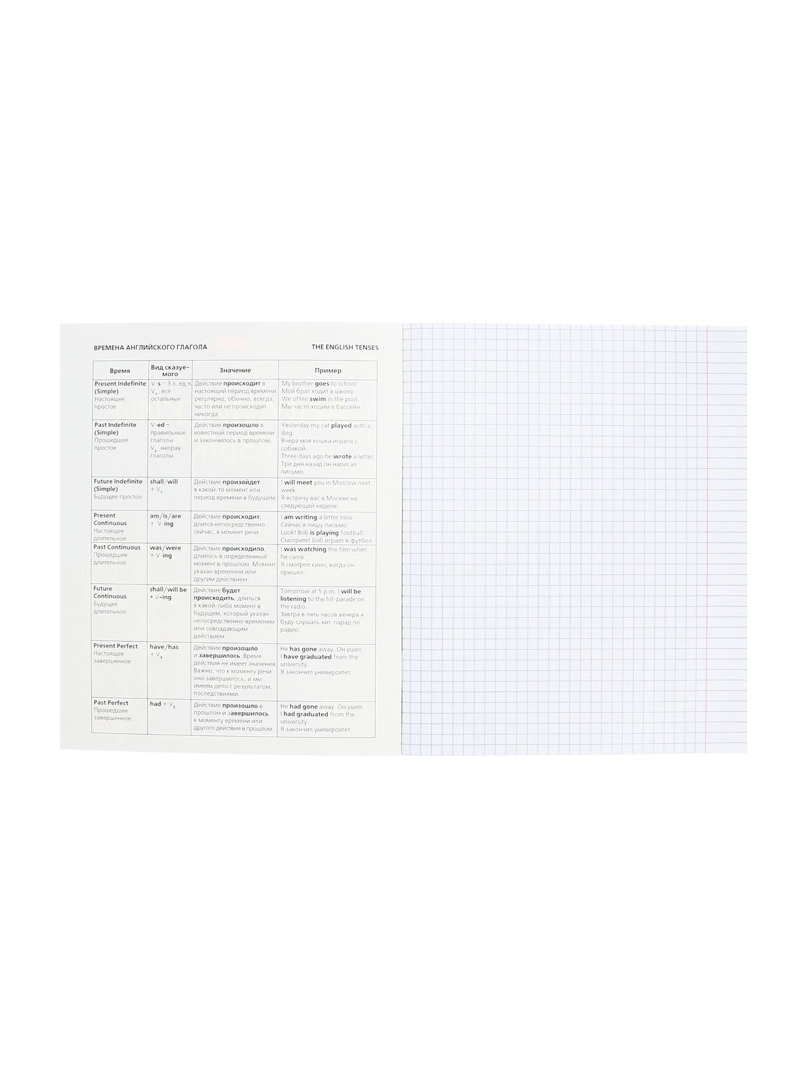 Для эффективного изучения языка Грамматические схемы в начале тетради служат удобной шпаргалкой во время выполнения заданий. Клетчатая разлиновка поддерживает аккуратное ведение словаря и записей. Фиолетовый дизайн с тематическими элементами создает позитивную ассоциацию с занятиями, помогая сохранить мотивацию для регулярной практики. | ||