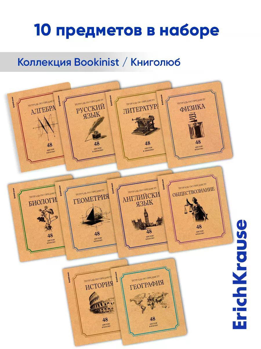 Компл предм тетр 48л 10предм "Bookinist", обл.мел.кар. бл.офсет, 5x17x21 см., ErichKrause, Россия