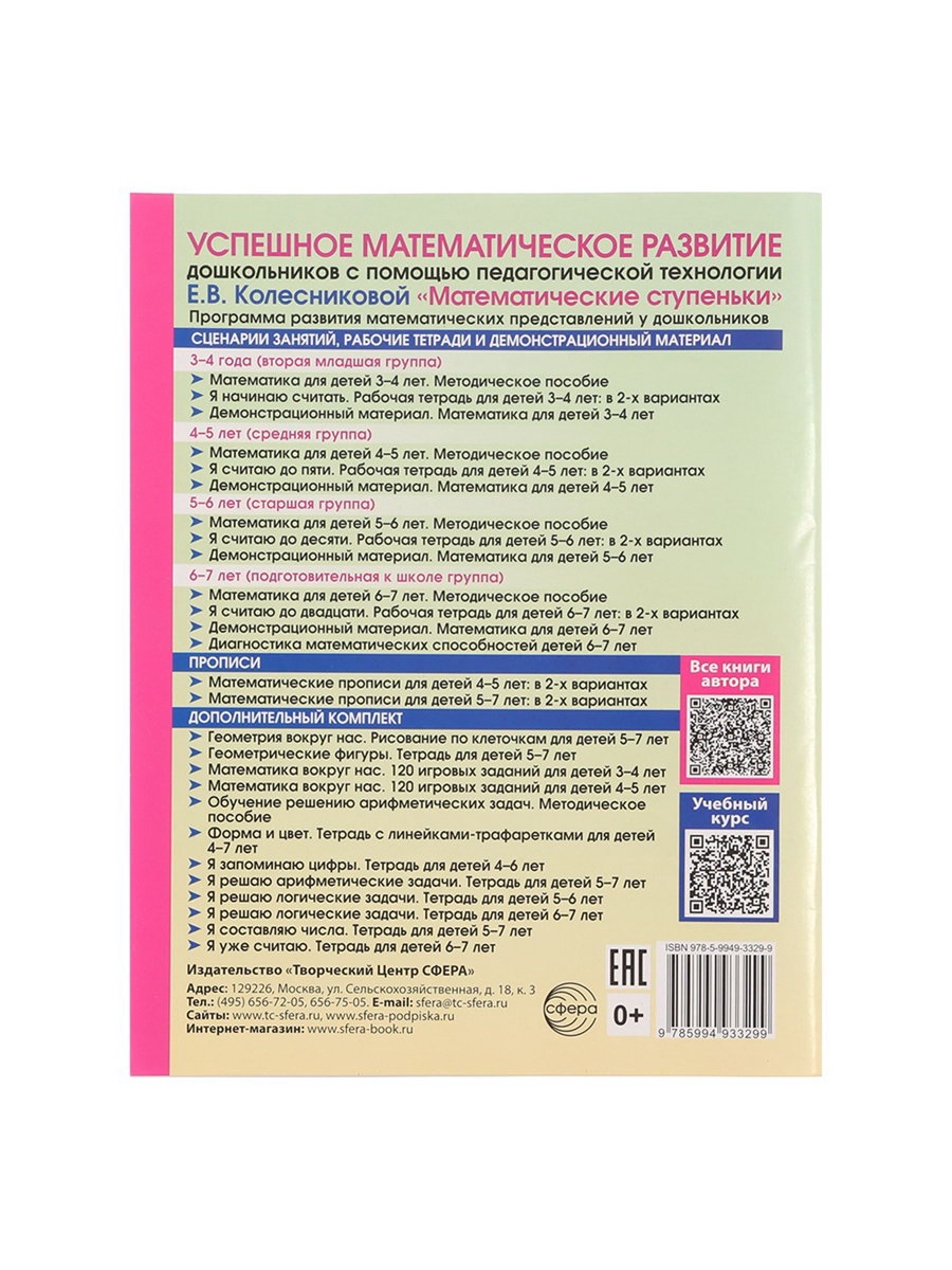 Возраст: Для детей, От 5 лет Размер упаковки: 16 x 0.5 x 21 см. Вид: Рабочие тетради Количество страниц: 48 Линовка блока: Без линовки Язык издания: Русский Формат: А5 Формат: А5 tnved: 4901990000 Тема обучения: Буквы, слова, русский язык Набор: Нет Тематика: Подготовка к школе Автор: Колесникова Елена Владимировна Тип обложки: Мягкий переплёт Пособие входит в дополнительный учебно-методический комплект популярнейшей авторской программы "Математические ступеньки" и предназначено для совместной работы взрослого (родителя, педагога, гувернёра, домашнего педагога) с ребёнком. "Математические ступеньки" результат многолетней работы автора с детьми. Программа и учебно-методический комплект на протяжении 20 лет перерабатывались и дополнялись на основе опыта не только автора, но и работавших по ней педагогов. В пособиях сохранены традиции, но также добавлены инновационные подходы, что позволяет заниматься по ним и в настоящее время. В пособии представлена система игровых заданий, выполнение которых направлено на реализацию ФГОС дошкольного образования. Они предусматривают формирование у детей предпосылок к универсальным учебным действиям: умению работать по правилу и образцу, понимать учебную задачу и решать её самостоятельно. Задания в книге составлены таким образом, что побуждают ребёнка к самостоятельной активной мыслительной деятельности, учат сравнивать, обобщать, анализировать, делать простейшие умозаключения. Рекомендуется широкому кругу специалистов, работающих в дошкольных образовательных учреждениях. Может быть использована родителями при подготовке детей к школе. | ||