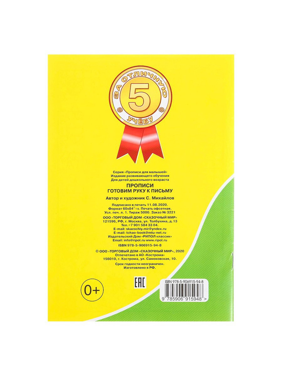 Возраст: Для детей, От 5 лет Размер упаковки: 20 x 0.2 x 14 см. Вид: Прописи Линовка блока: Клетка Язык издания: Русский Формат: А5 tnved: 4901990000 Тема обучения: Буквы, слова, русский язык Тематика: Подготовка к школе Набор: Нет Количество страниц: 14 Тип обложки: Мягкий переплёт Автор: Нет автора Прописи "Подготовка руки к письму" это увлекательный инструмент для развития навыков, необходимых будущему первокласснику. Страницы с клетчатой линовкой помогают детям от 5 лет освоить базовые движения для написания букв и слов, развить мелкую моторику и подготовиться к школе. Мягкий переплёт делает прописи удобными для использования дома или в детском саду. Особенности