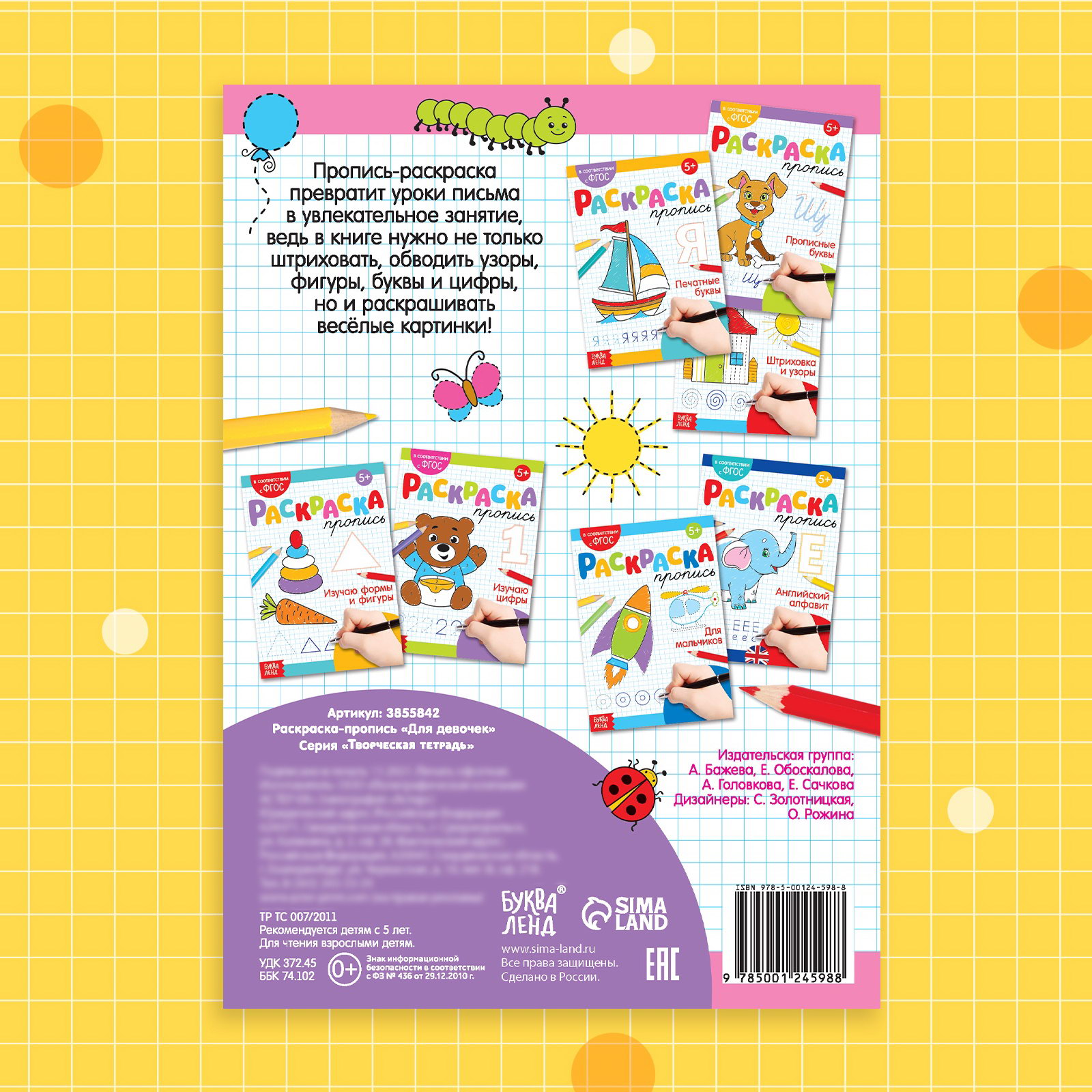 Линовка блока: Без линовки, Клетка Возраст: Детский, Для детей, От 5 лет Вид раскраски: Контурные, С заданиями Развитие навыков: Буквы, цифры, Моторика Размер упаковки: 0.2 x 21 x 14.5 см. Язык издания: Русский Формат: А5- tnved: 4903000000 Вид: Прописи Количество страниц: 20 Тема обучения: Цвета, формы, звуки Набор: Нет Тематика: Подготовка к школе Тематика праздника: 8 Марта Тип обложки: Мягкий переплёт Автор: Сачкова Евгения Камилевна Год издания: 2021 Изображение: Принцесса Прописи с раскраской разработаны с учётом стандартов образования ФГОС. Занимаясь по ним, ребёнок сможет подготовиться к школе. Прописи с раскраской превратят уроки письма в увлекательное занятие, ведь в книге нужно не только штриховать, обводить узоры, фигуры, буквы и цифры, но и раскрашивать весёлые картинки. Во время занятий с прописями ребёнок: