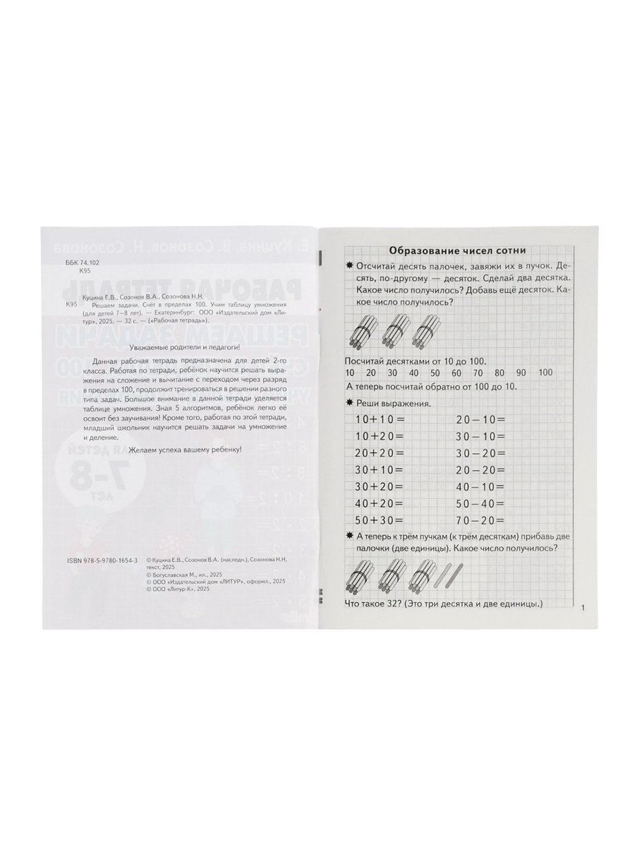 Рабочая тетрадь "Решаем задачи. Счёт в пределах 100. Учим таблицу умножения", 7 - 8 лет, Куцина Е., ЛИТУР, Россия