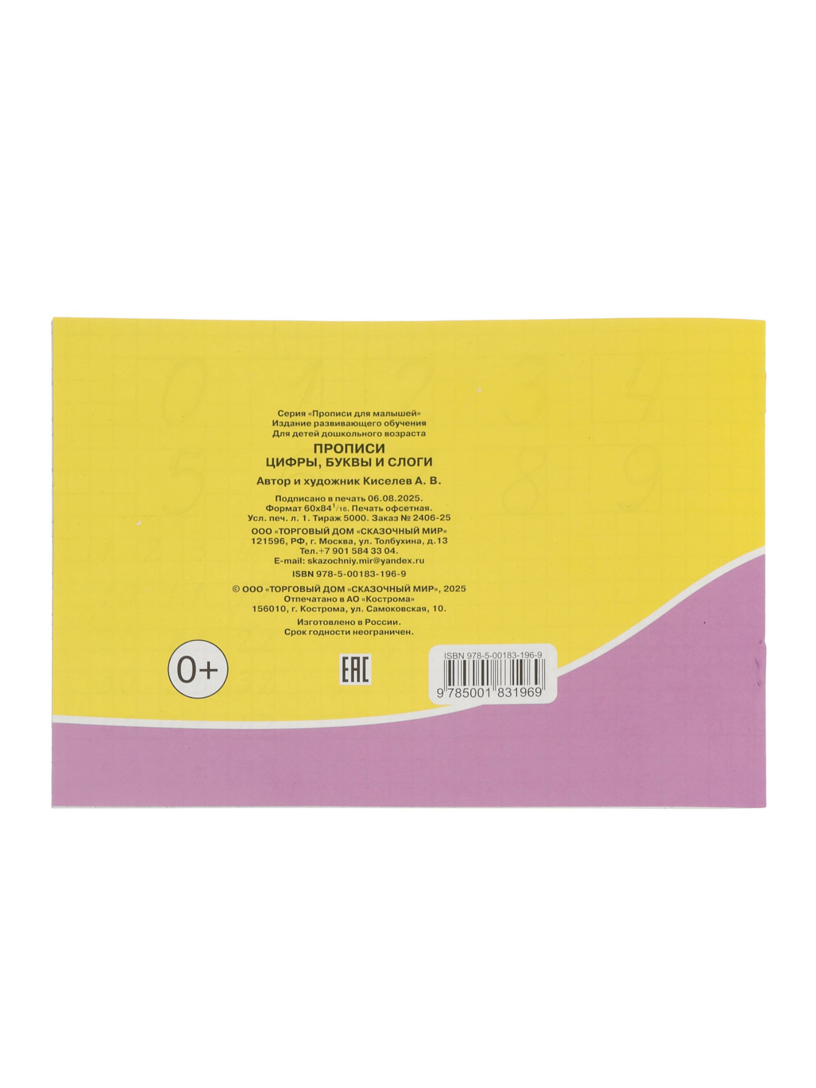 Прописи "Цифры, буквы и слоги", ТД Сказочный мир, Россия