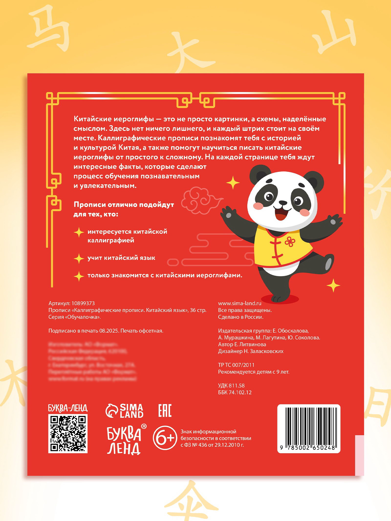 Прописи "Каллиграфические прописи. Китайский язык", 36 стр., 17x0.5x20.5 см., БУКВА-ЛЕНД, Россия