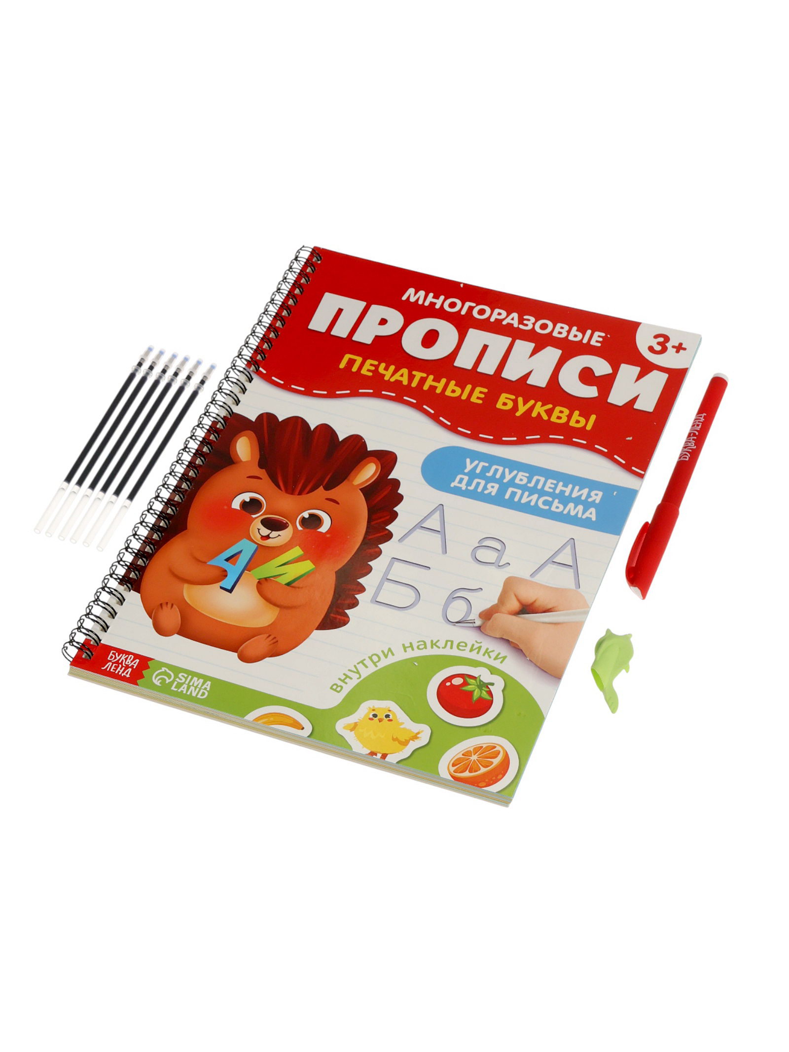 Прописи с углублениями и наклейками "Печатные буквы", 40 стр., 21x0.5x29.7 см., БУКВА-ЛЕНД, Китай