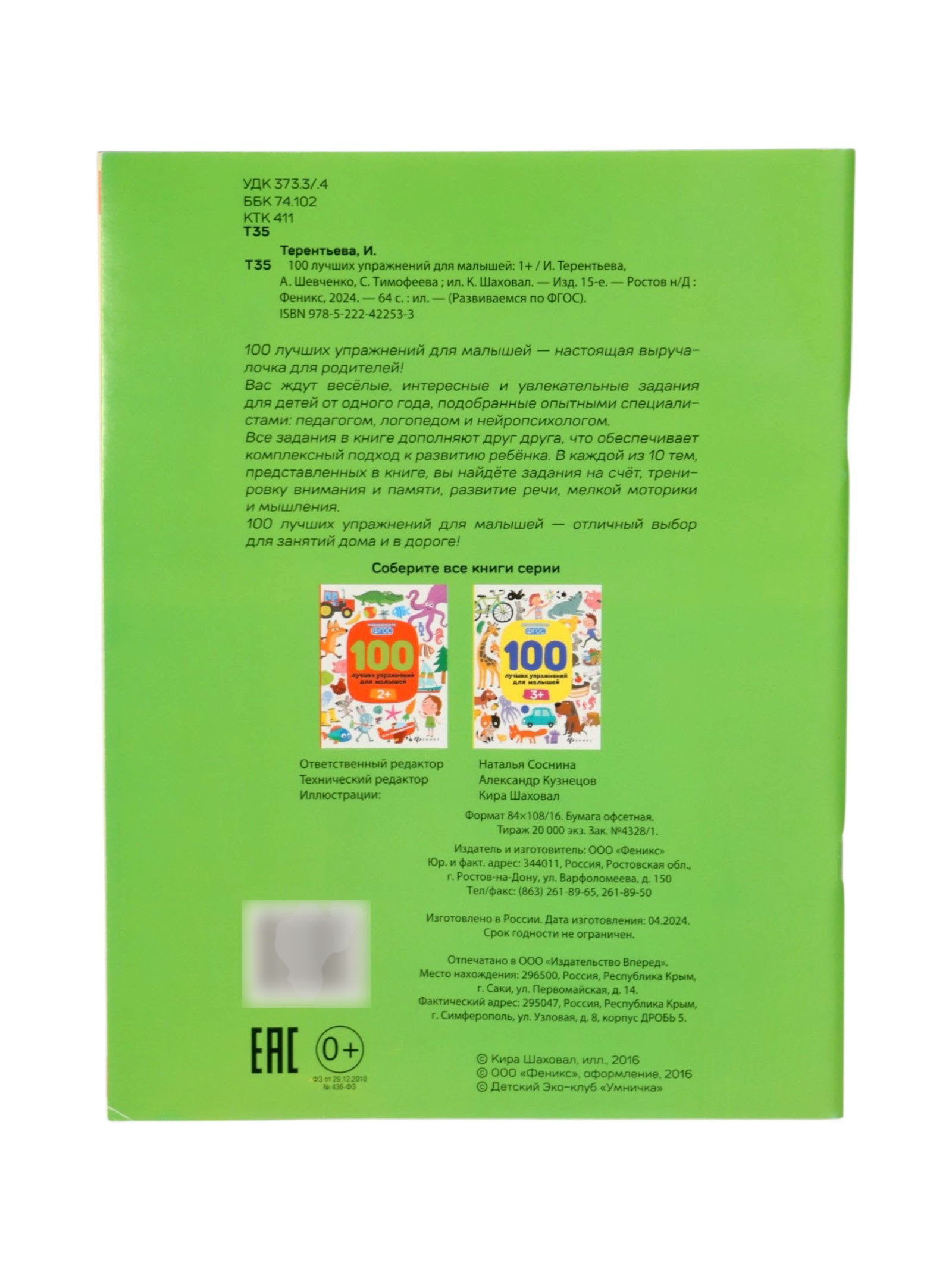100 лучших упражнений для малышей: 1+, Терентьева И., Издательство «Феникс-Премьер», Россия