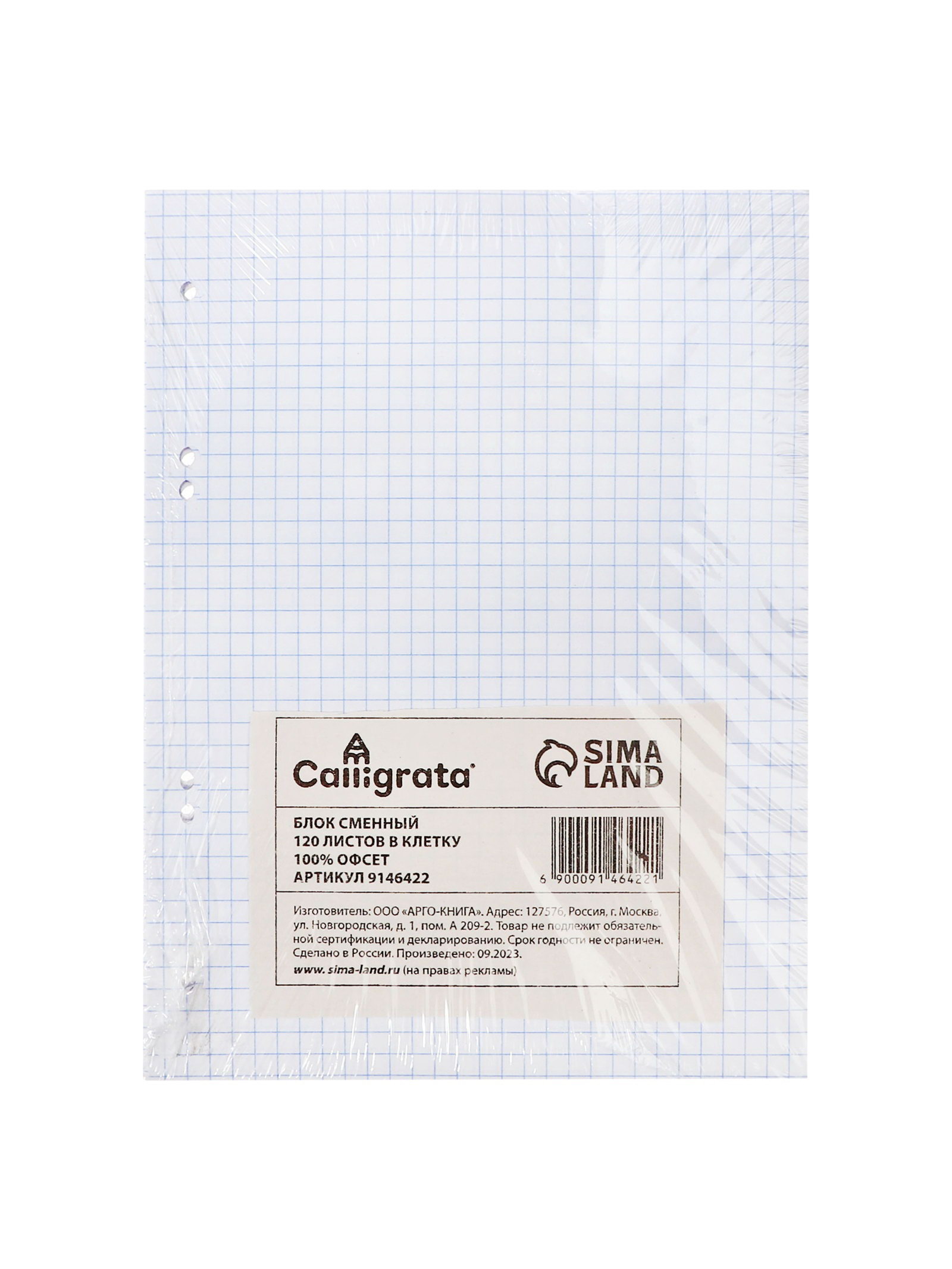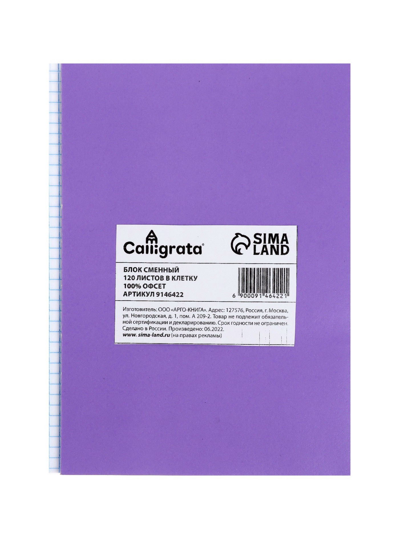 Сменный блок для тетрадей на кольцах А5, 120 листов, в клетку, блок офсет № 160 г/?2, белизна 100%, Calligrata, Россия