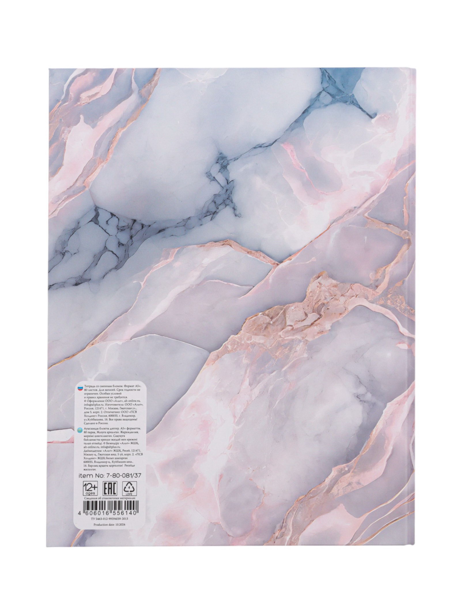 Тетрадь на кольцах 80л кл CARRARA, со смен блоком, тв обл, бл 60 г/м2, BrunoVisconti, Россия