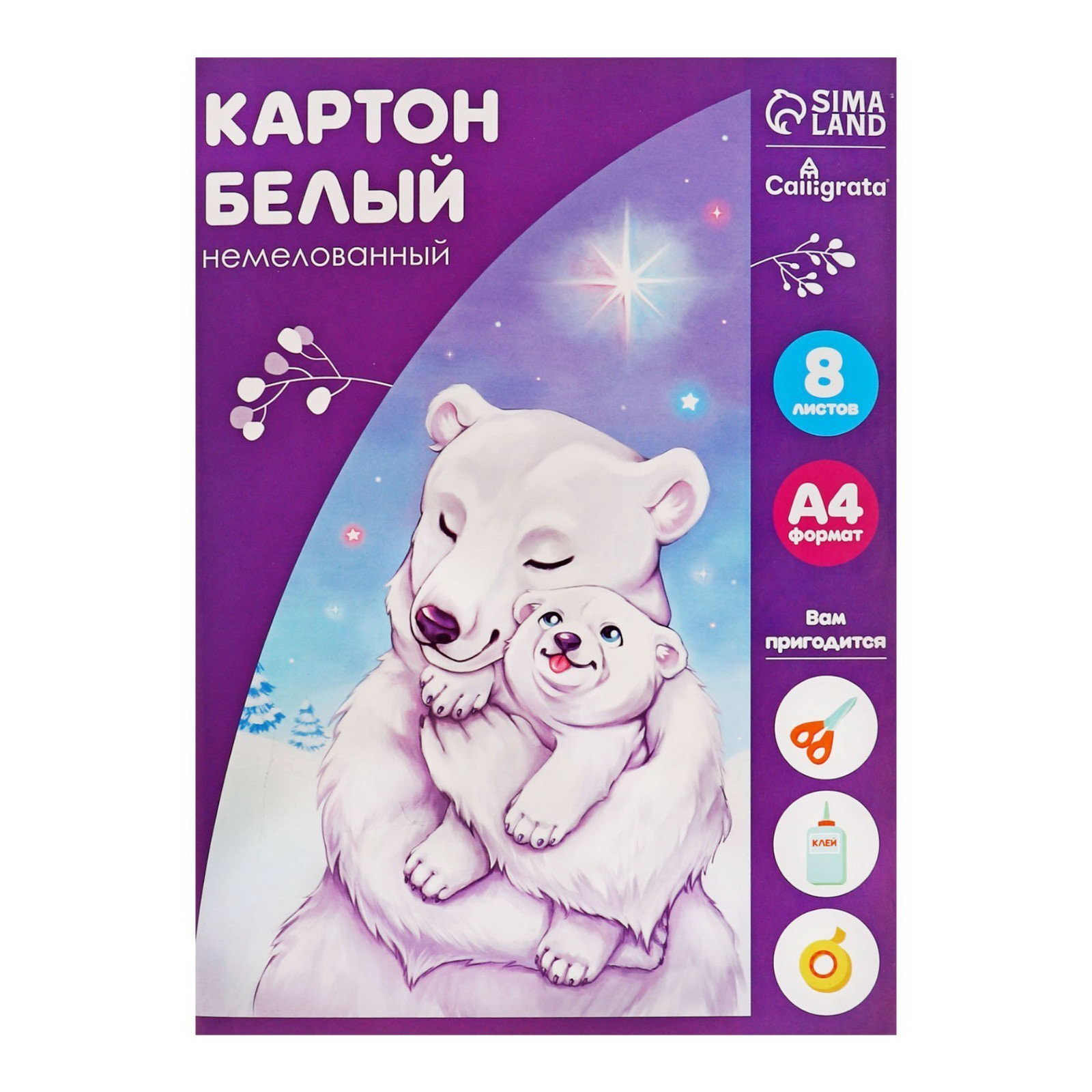 Картон белый А4, 8 листов "Белый мишка", немелованный, 220 г/?2, в папке, Calligrata, Россия