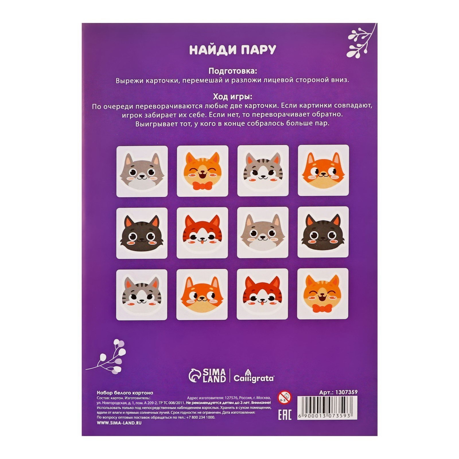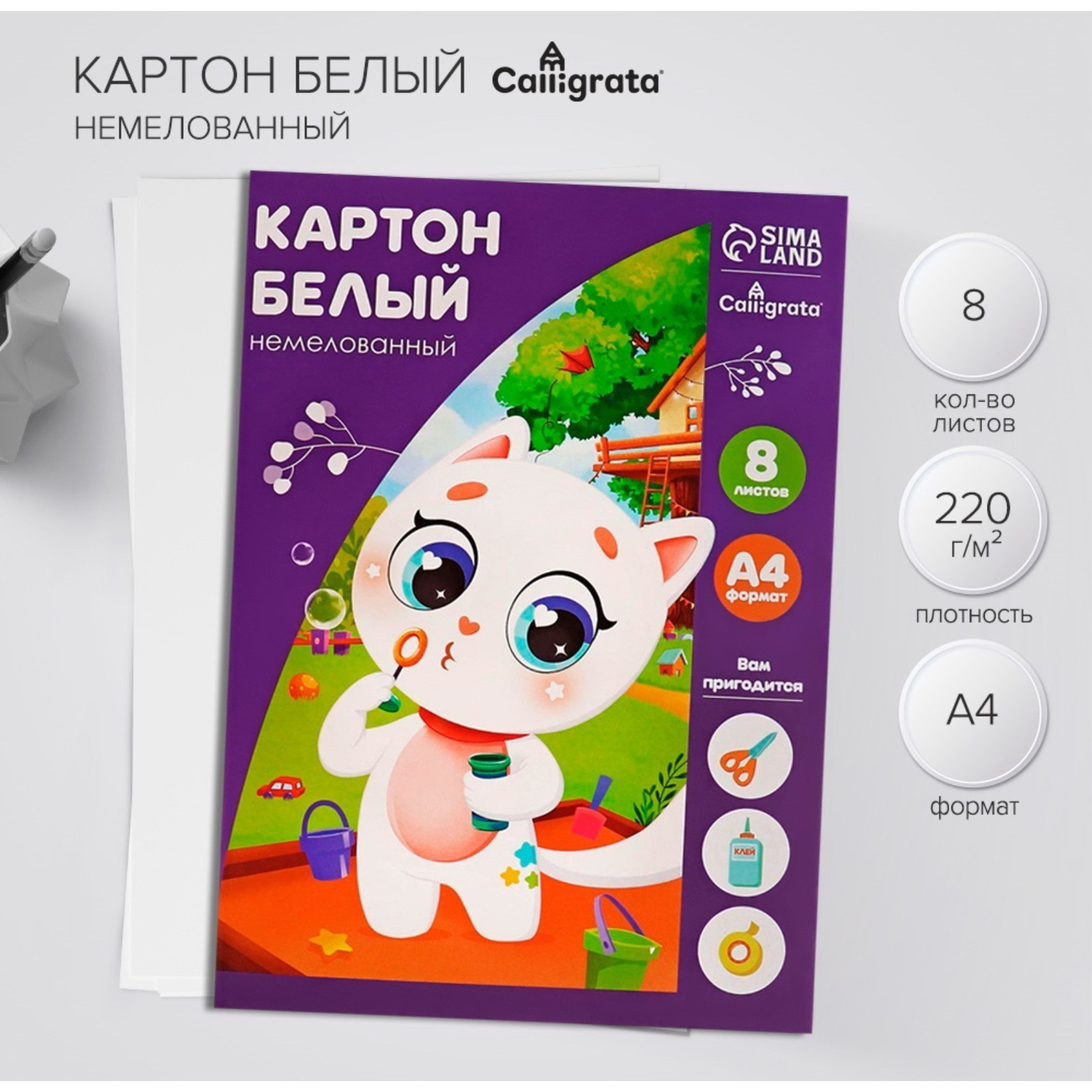 Картон белый А4, 8 листов "Котенок", немелованный, плотность 220 г/?2, в папке, Calligrata, Россия