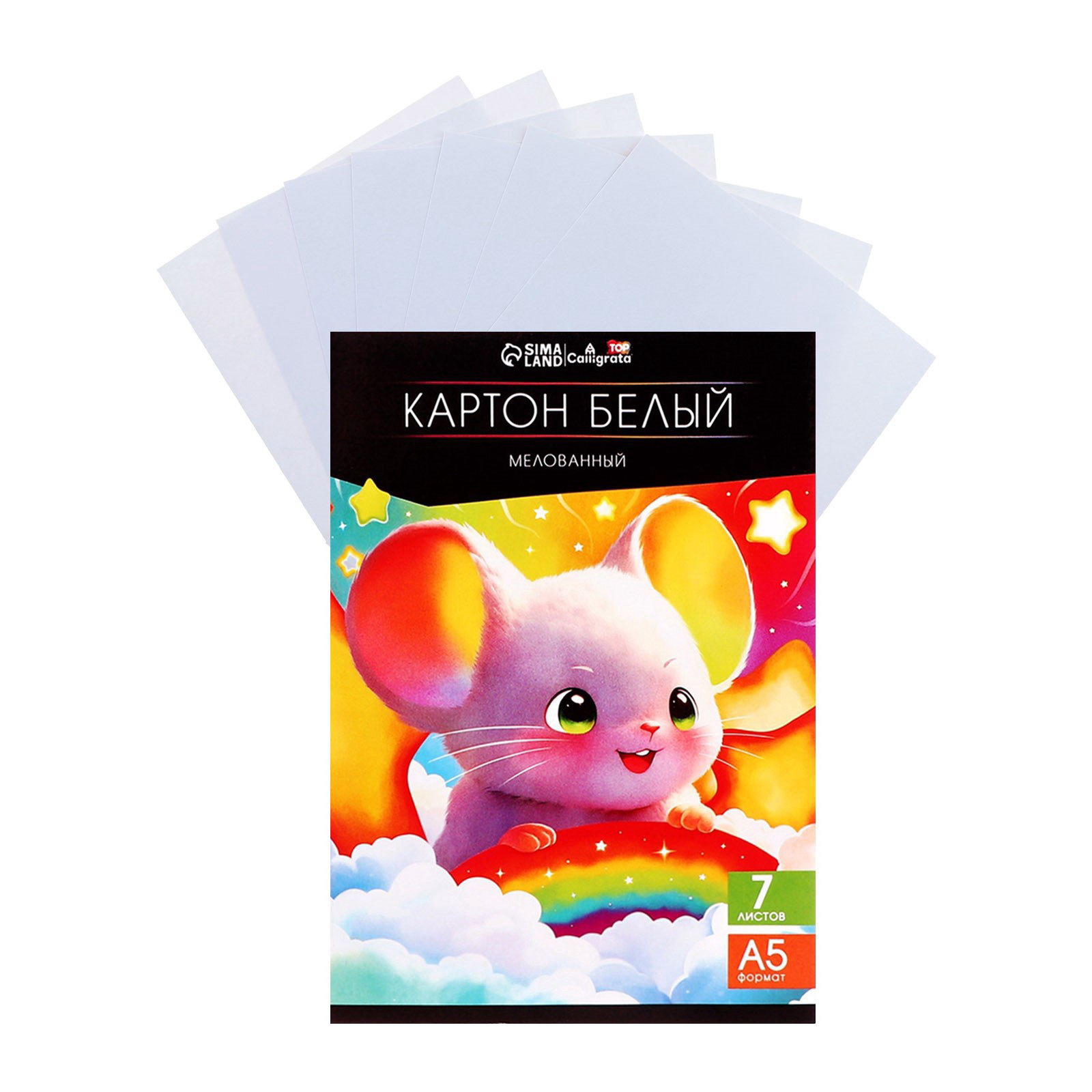 Картон белый А5, 7 листов, 230 г/?2, мелованный, в папке, Calligrata, Россия