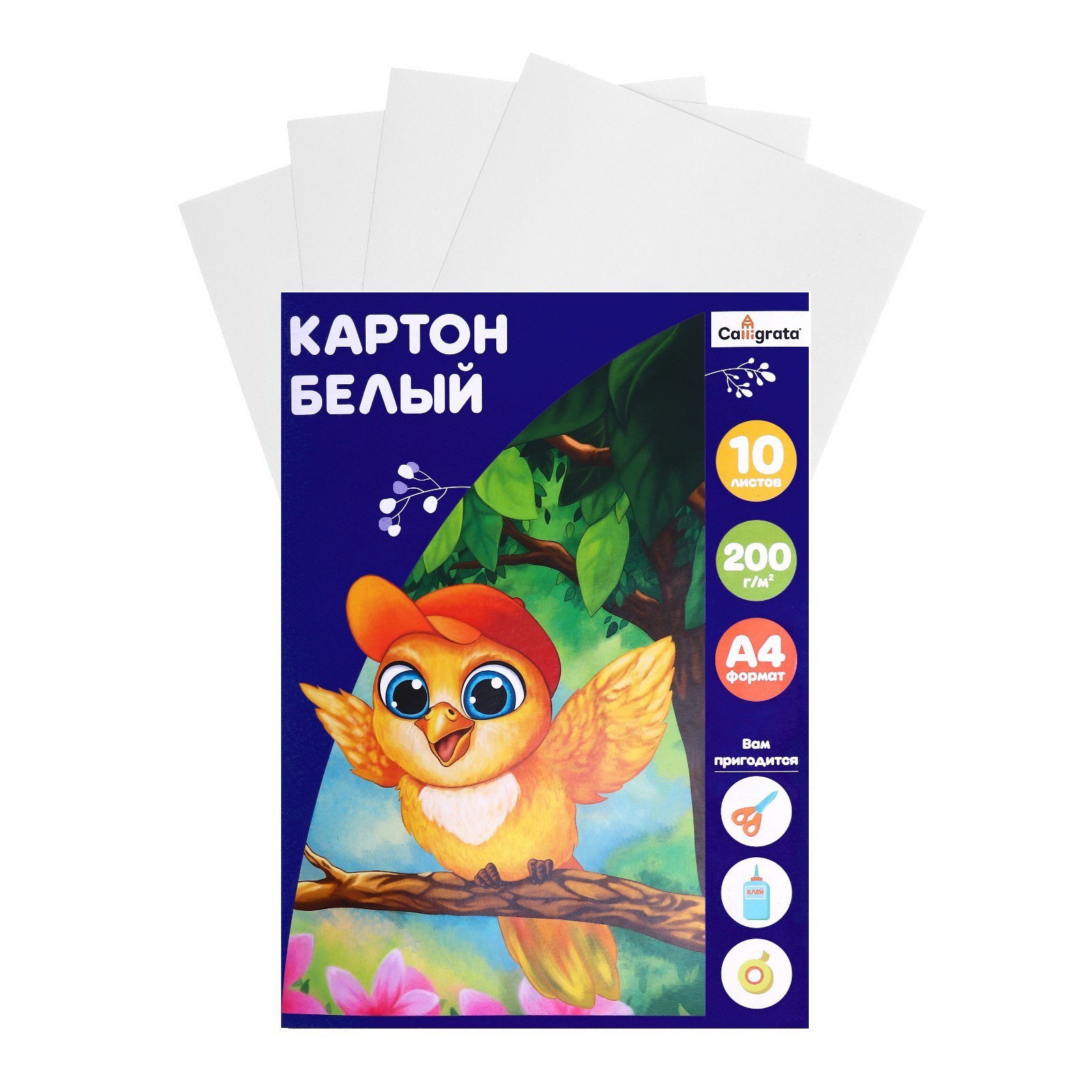 Картон белый А4 10 листов, 200 г/?2, немелованный, односторонний, в папке, Calligrata, Россия