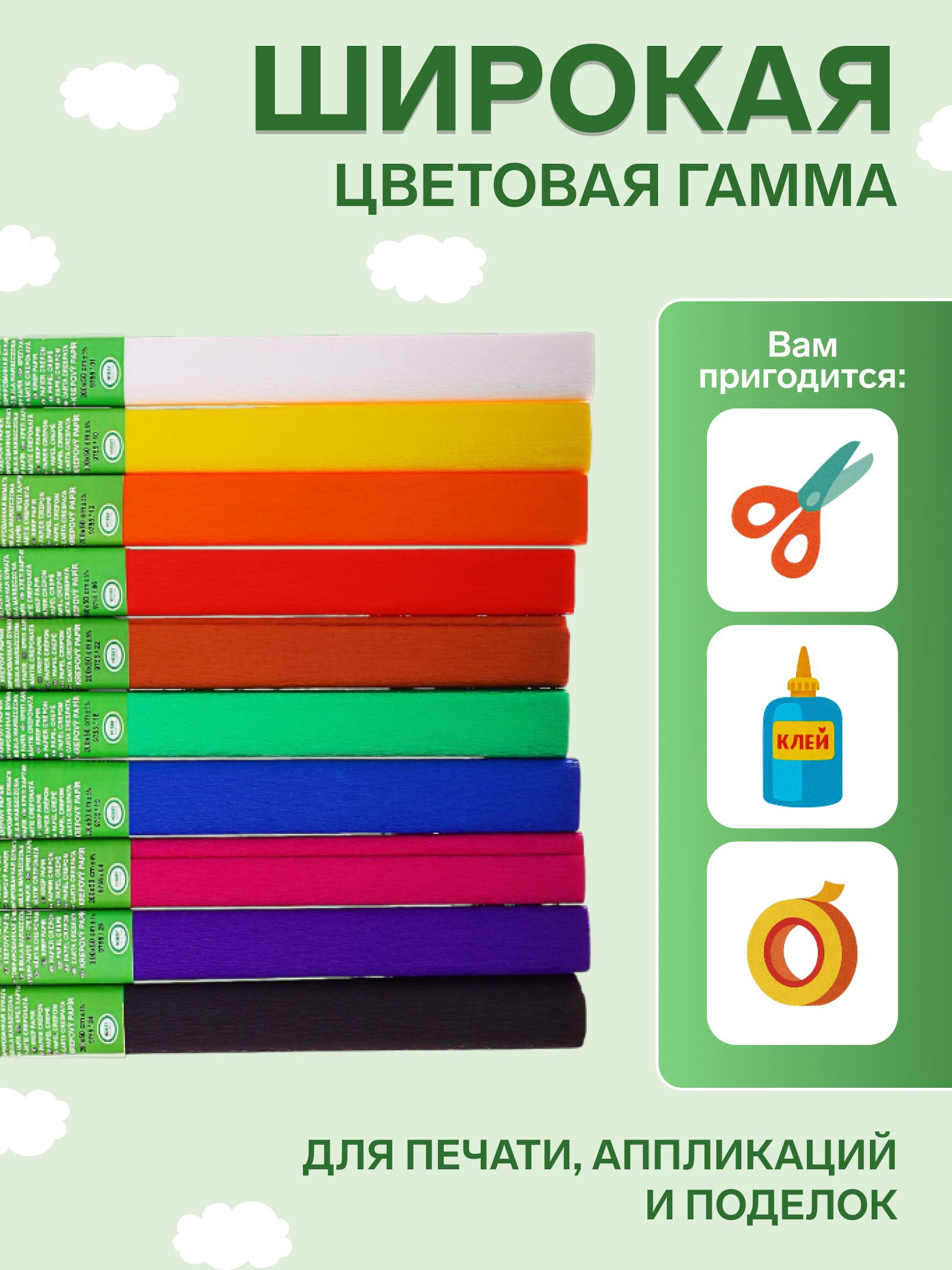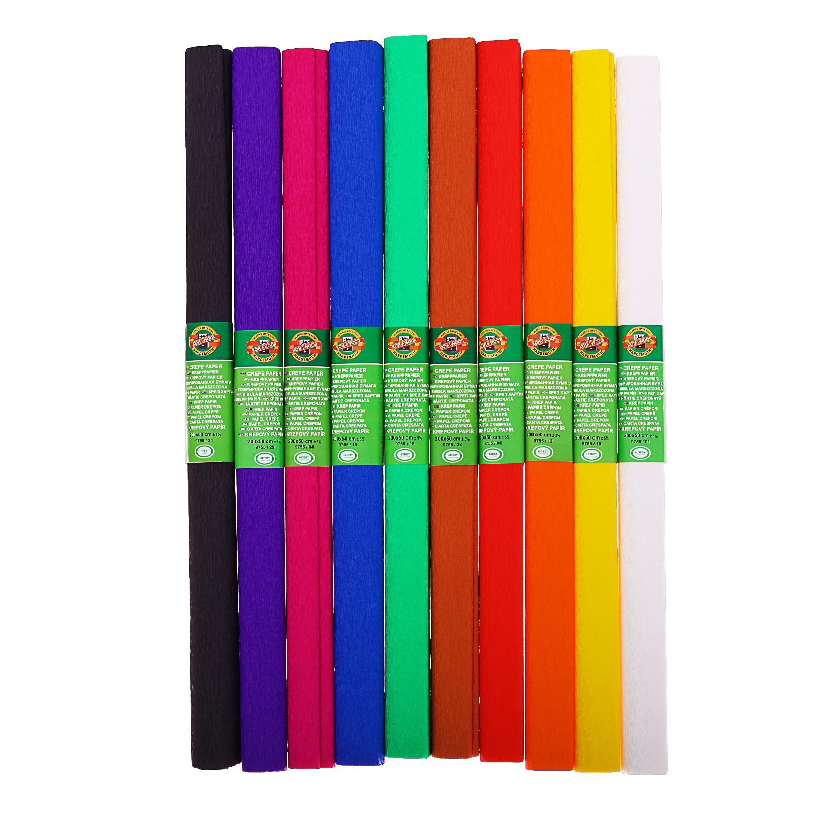 Набор бумаги креповой поделочной 10 штук, 50x200 см, плотность 30 г/?2, 51x3.5x17 см., Koh-I-Noor, Чехия
