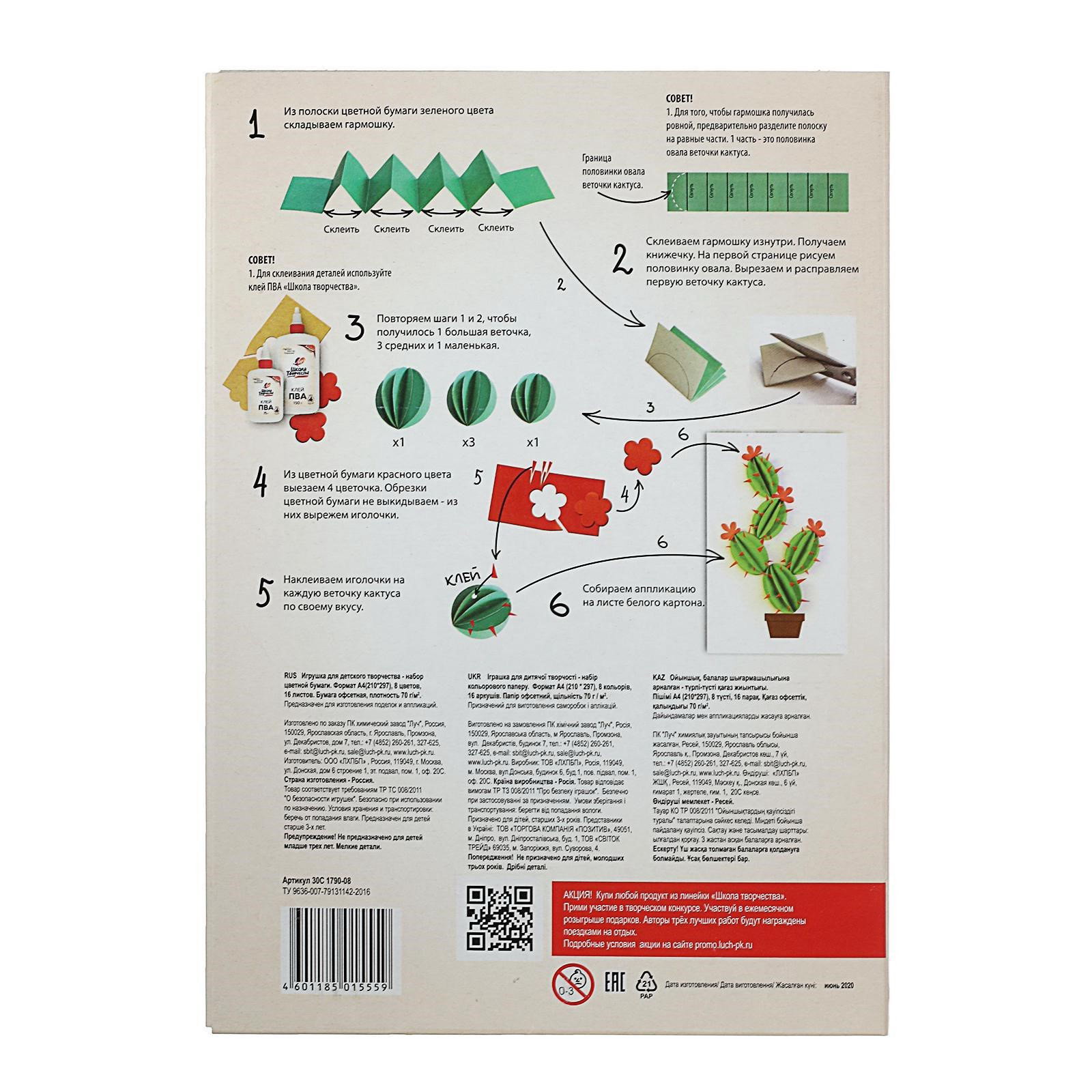Бумага цветная А4, 16 листов 8 цветов офсет 70 г/?2, Луч, Россия