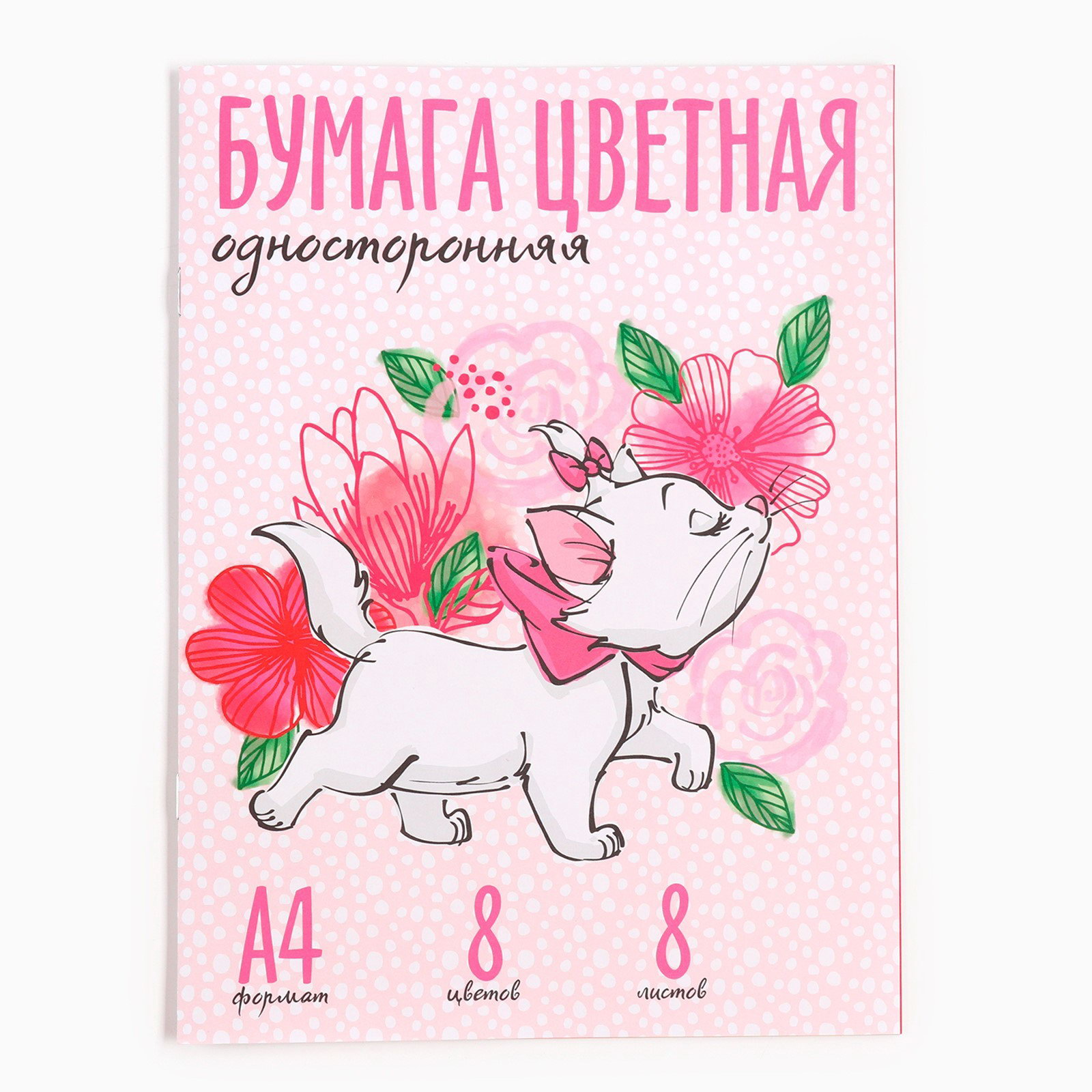 Цветная бумага, А4, 8 листов, 8 цветов, немелованная, односторонняя, на скрепке, 48 г/?2, "Коты аристократы", Disney, Россия