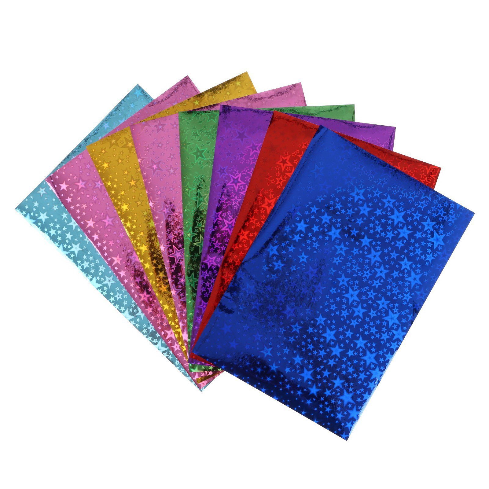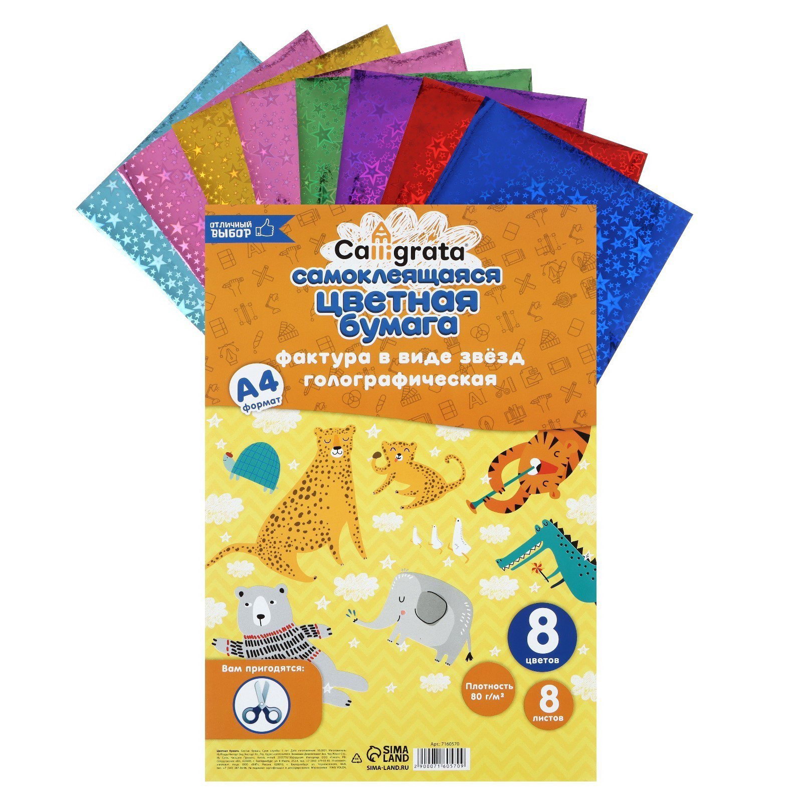 Набор бумаги голографической самоклеящейся "Звезды" А4, 8 листов, 8 цветов, рисунок, 80 г/?2, 19.4x0.1x28.5 см., Calligrata, Китай