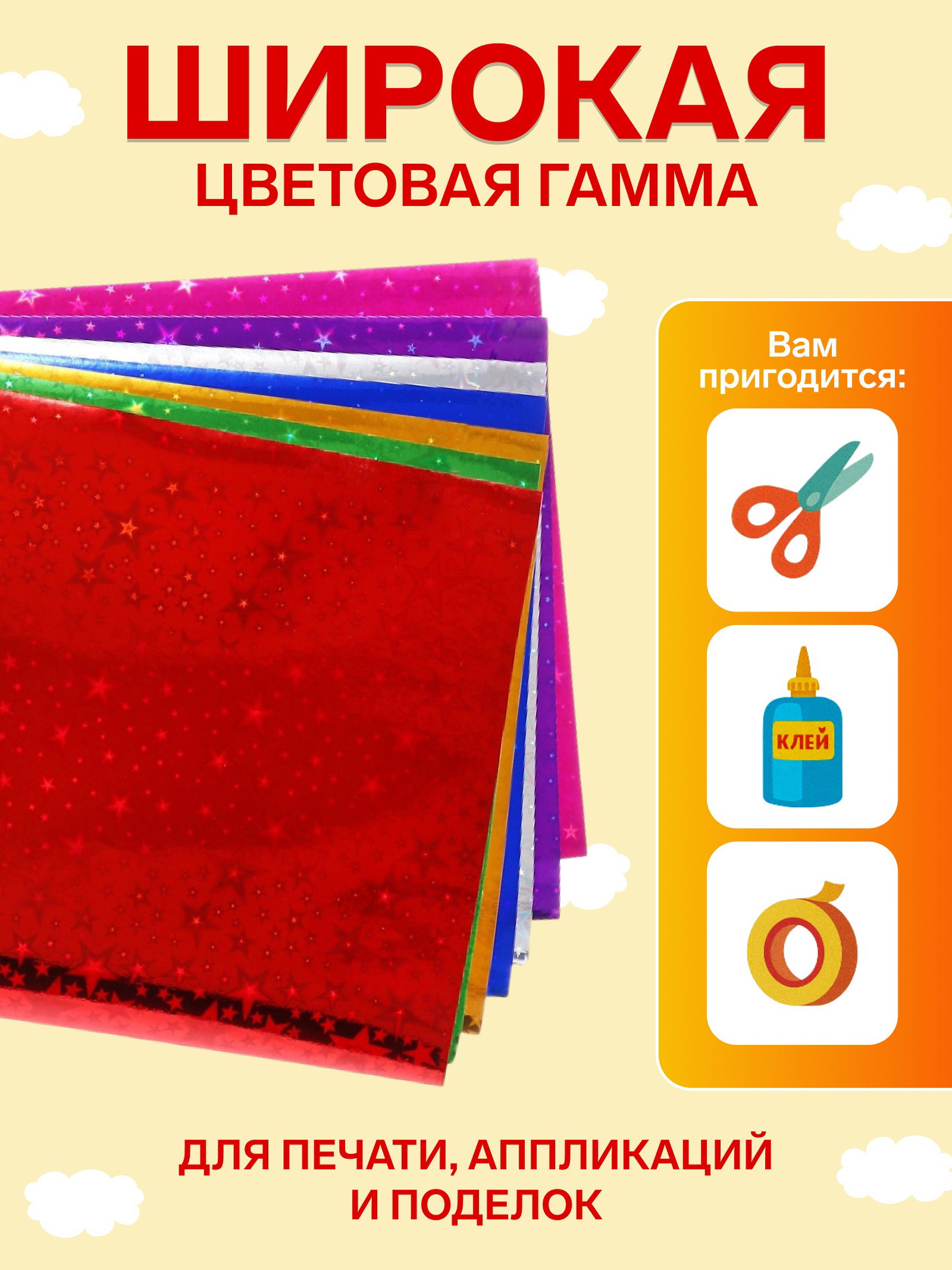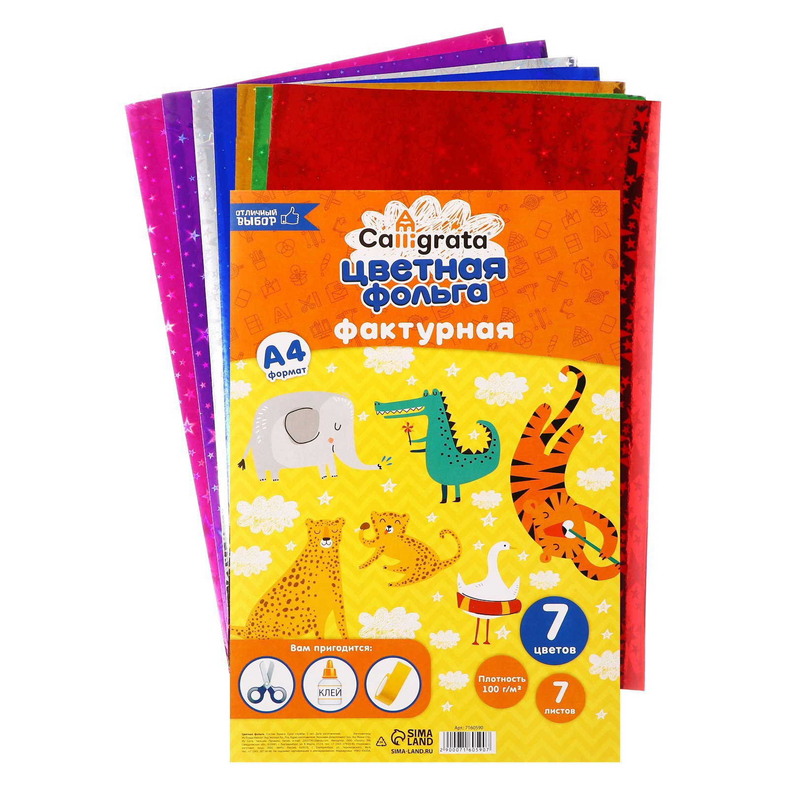 Набор фольги цветной формат А4, 7 листов, 7 цветов, ГОЛОГРАФИЧЕСКОЙ звезды, плотность 100г/?2, 19.4x0.1x28.5 см., Calligrata, Китай