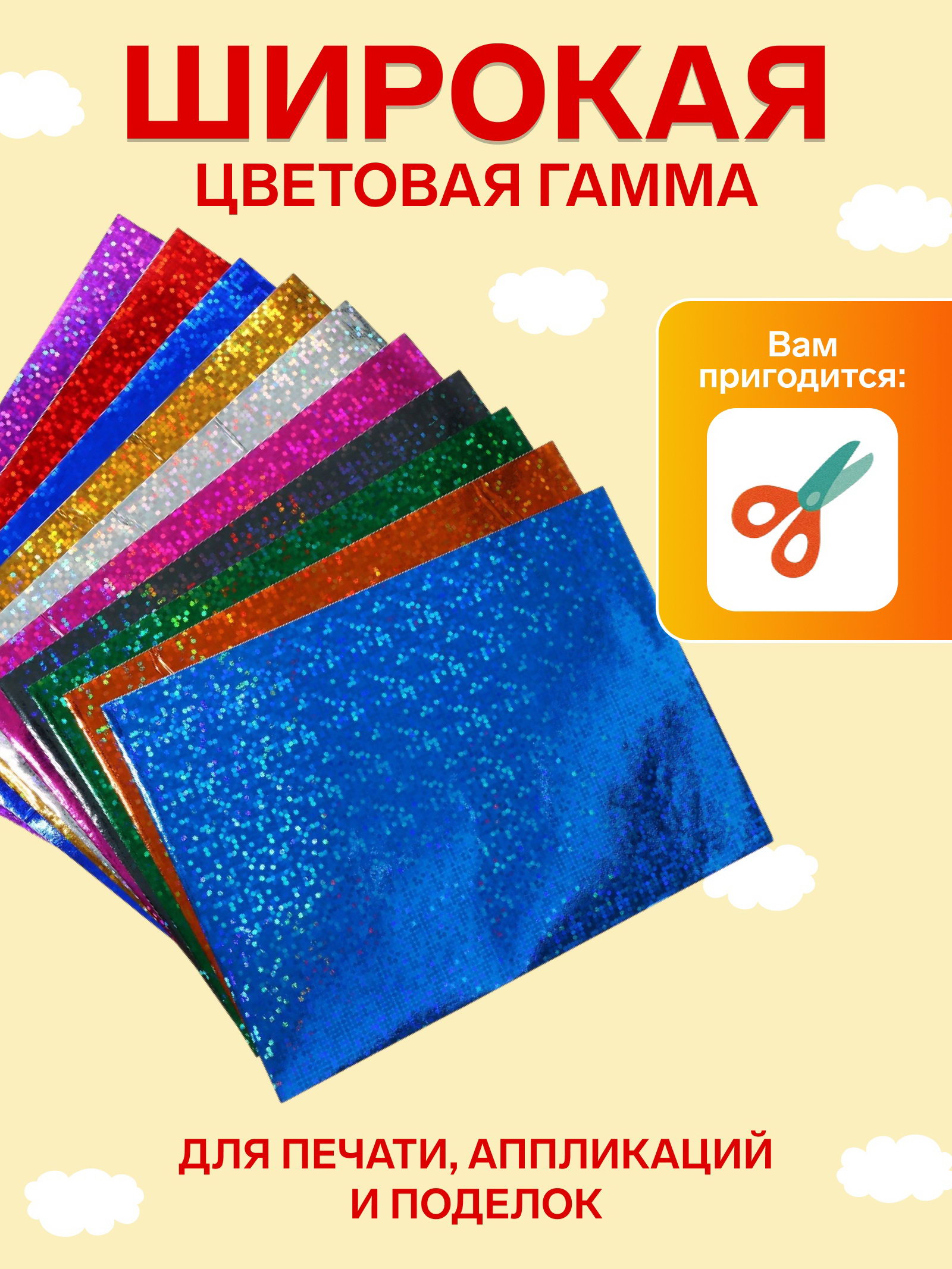 Особенность: Голографический(ая), С рисунком, Самоклеящий(ая)ся Размер упаковки: 21.5 x 0.1 x 32.5 см. Тип скрепления: Лист Тип: Бумага-плёнка tnved: 3919900000 Вид: Листы Цвет: МИКС Формат: А4 Плотность, г/?2: 70 Количество цветов: 10 Количество листов: 10 Бумага цветная самоклеящаяся с рисунком.Такая бумага часто используется для различных творческих проектов, изделий ручной работы, декорирования и создания наклеек. Она удобно режется и легко приклеивается к различным поверхностям, что делает её популярной среди школьников, студентов и любителей рукоделия. Характеристики: | ||