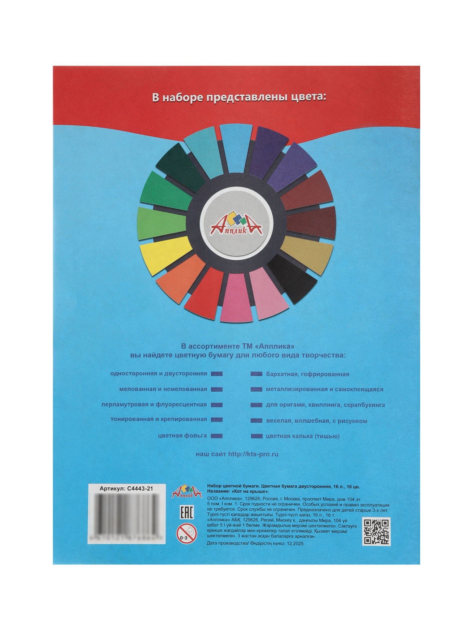 Размер упаковки: 20 x 0.2 x 27 см. tnved: 4802562000 Температурное ограничение: Нет Цвет: Разноцветный Тип: Бумага Количество листов: 16 Количество цветов: 16 Тип скрепления: В книжке Плотность, г/?2: 50 Формат: А4 | ||