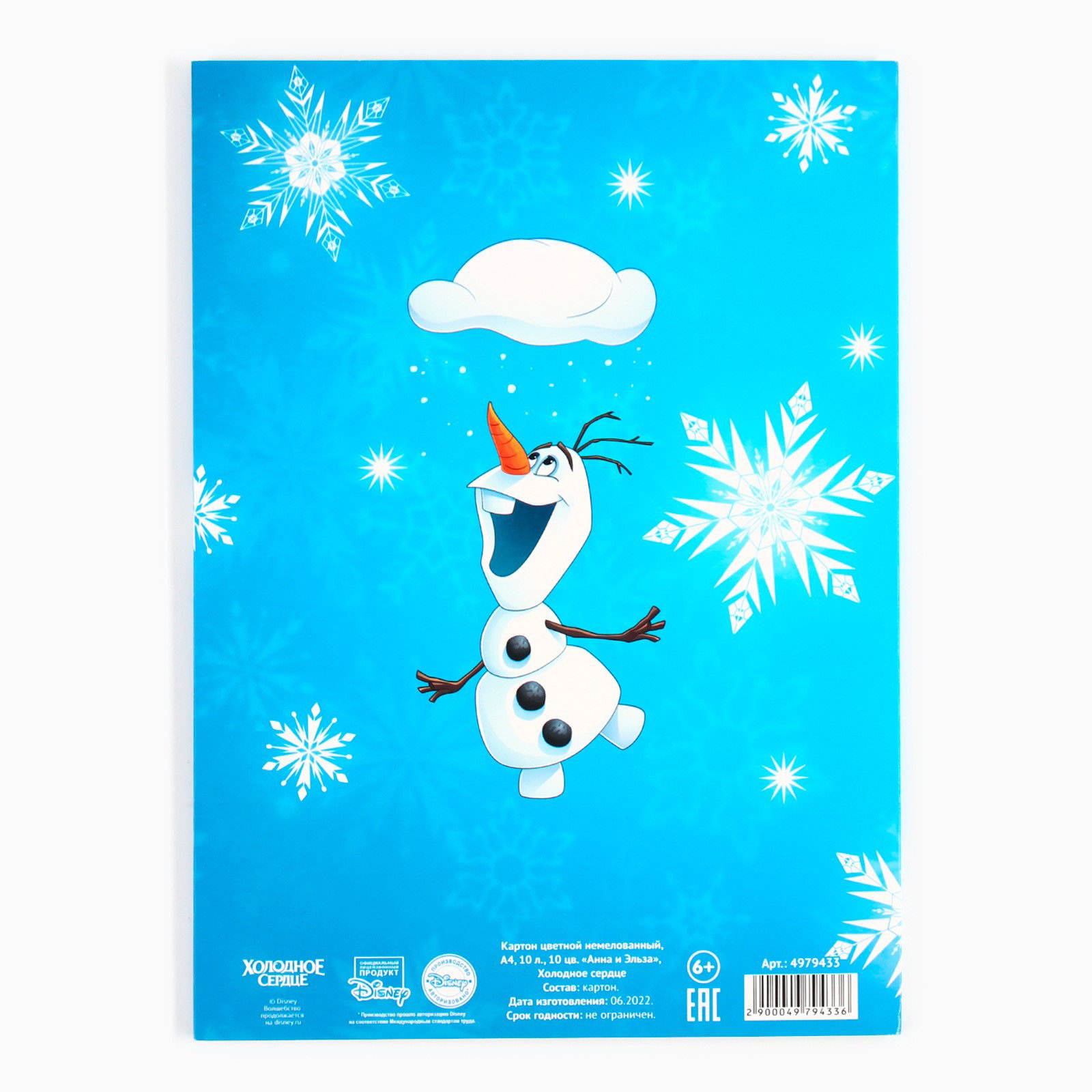 Цветной картон, А4, 10 листов, 10 цветов, немелованный, односторонний, в папке, 220 г/?2, "Холодное сердце", Disney, Россия