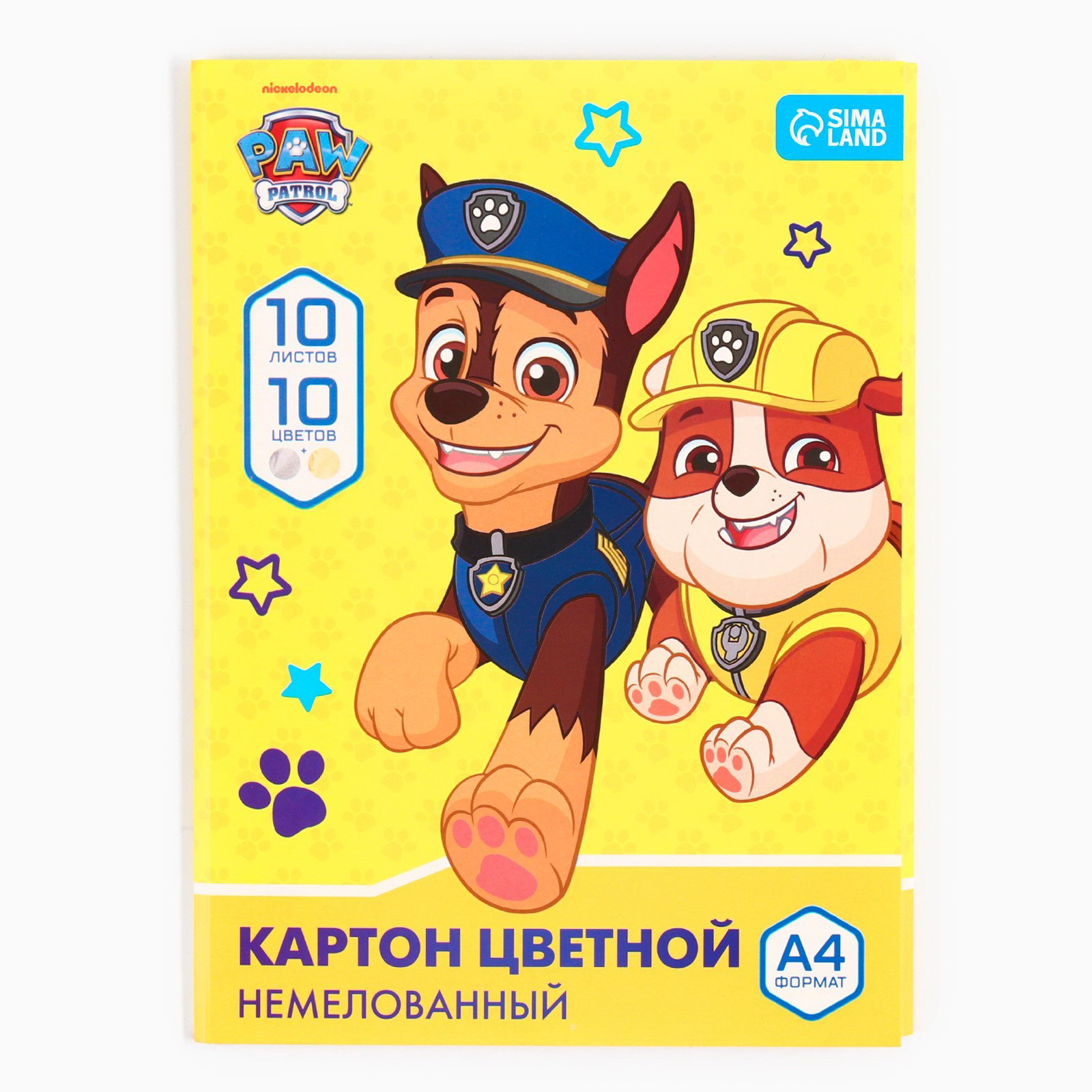 Цветной картон, А4, 10 листов, 10 цветов, немелованный, односторонний, в папке, 220 г/?2, "Щенячий патруль", ArtFox STUDY, Россия