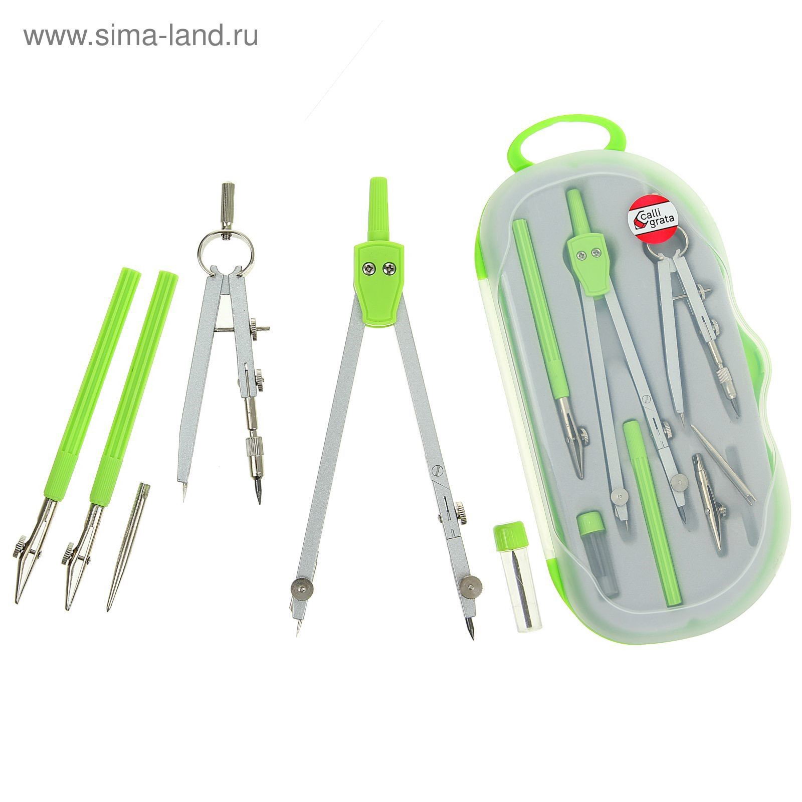 Готовальня 7 предметов: 2 циркуля, 2 рейсфедера, 2 удлинителя, грифель, центрик, в пластиковом пенале, 10.5x2x21 см., Calligrata, Китай