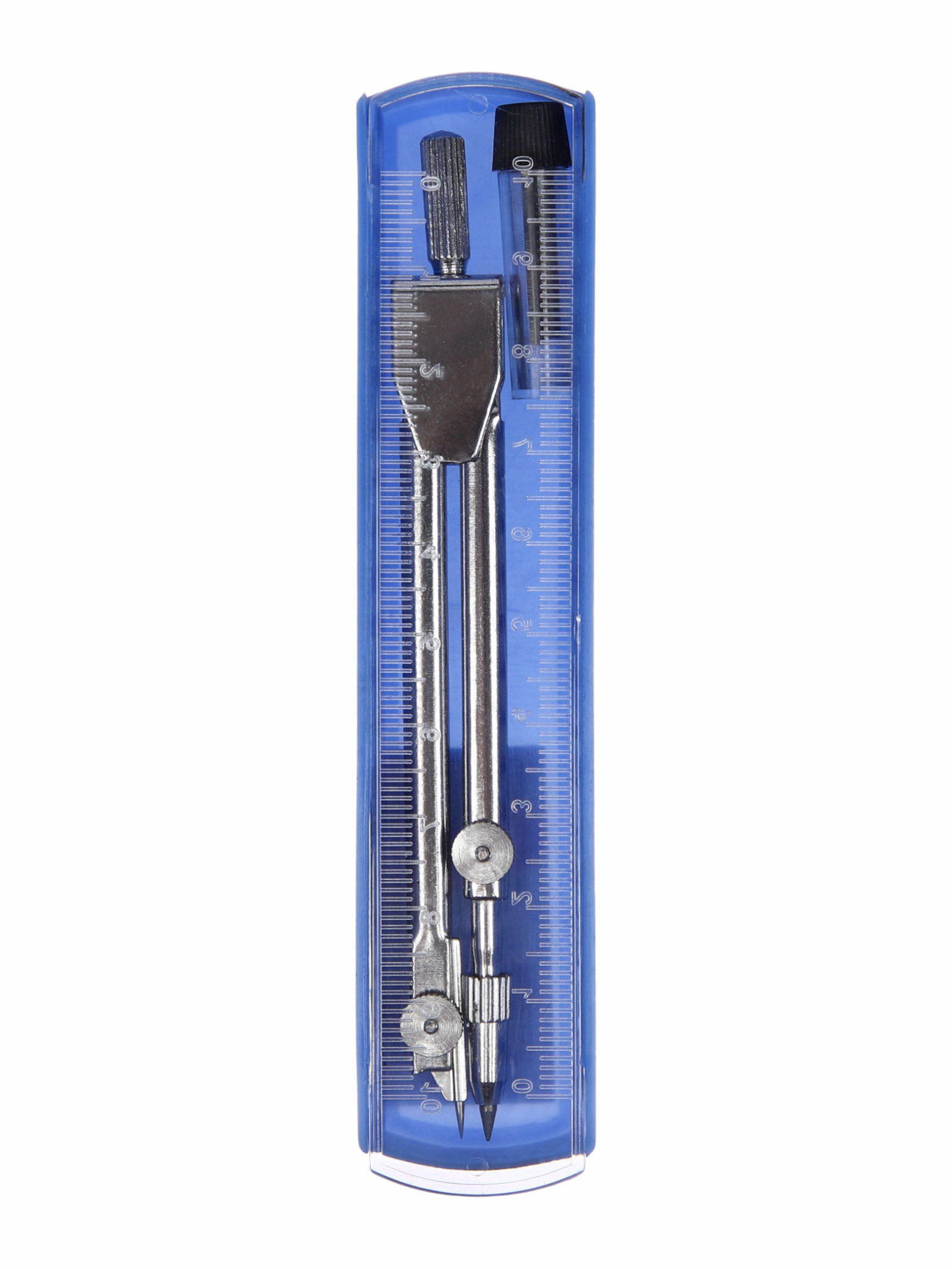 Циркуль металлический 110 мм, в пластиковом пенале, крышка-линейка, с грифелем, МИКС, 4x13x1.1 см., Calligrata, Китай