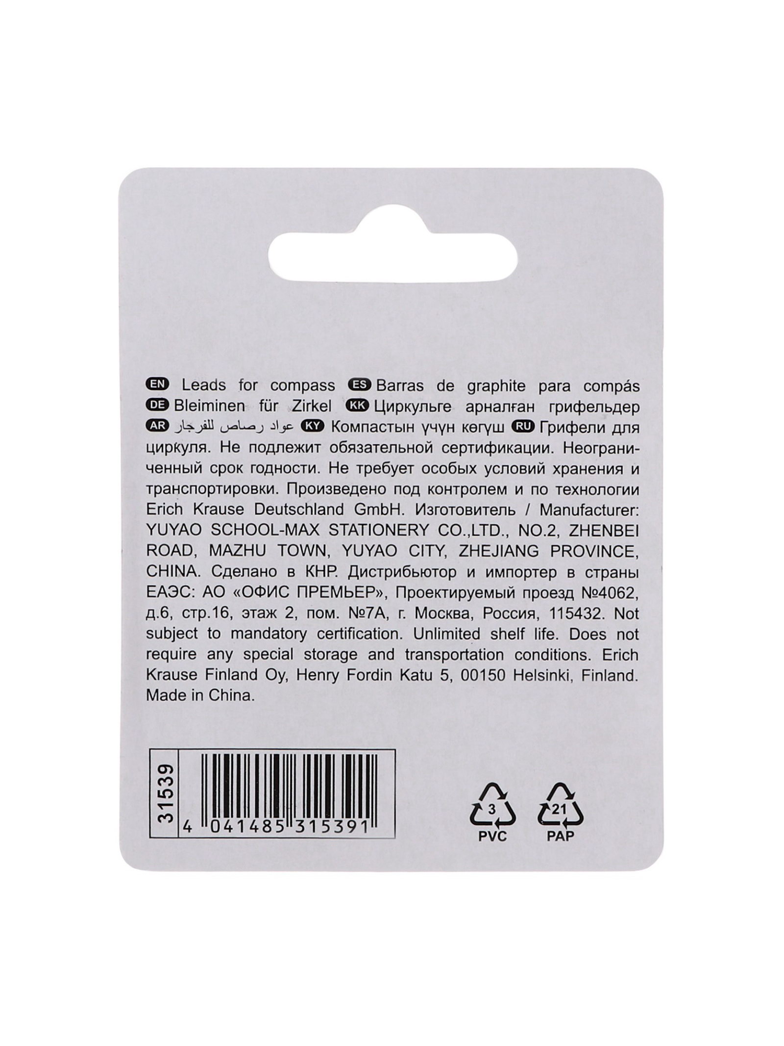 Набор грифелей для циркулей в блистере, 7x10x1 см., ErichKrause, Китай