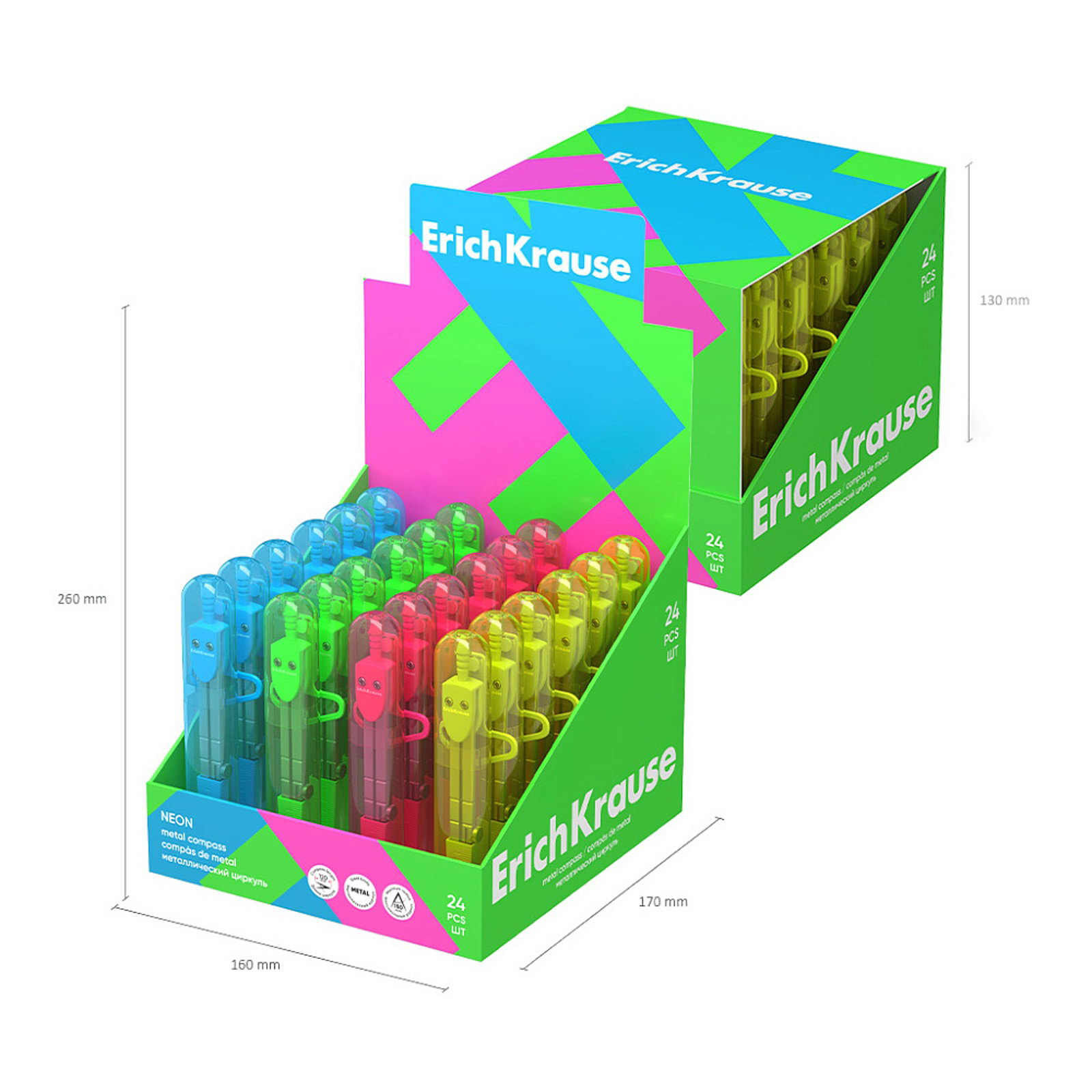 Циркуль металлический Erich Krause S-Cool, 120 мм, максимальный радиус 18 см, пластиковый чехол с линейкой, европодвес, МИКС, ErichKrause, Китай