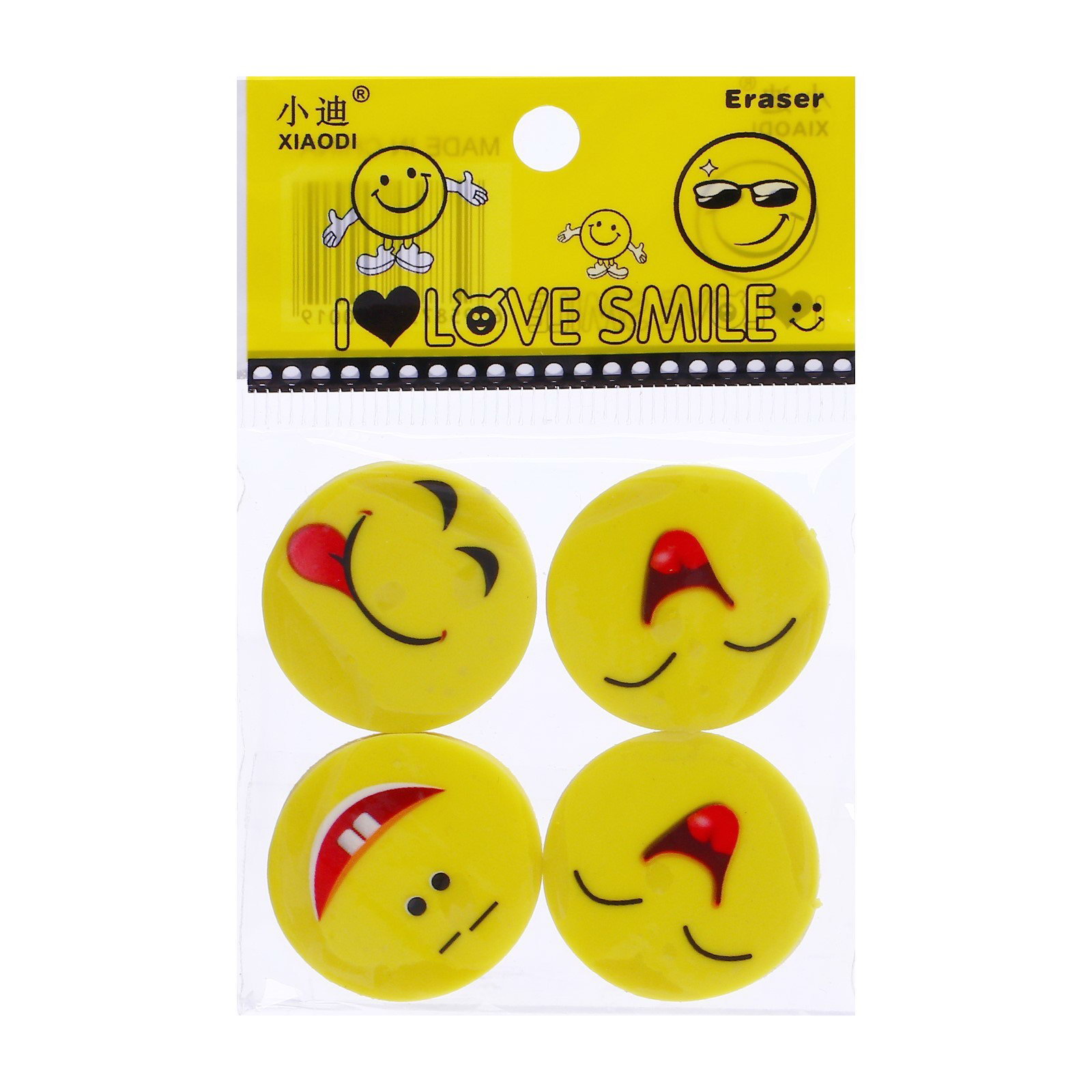Набор ластиков фигурных Calligrata "Смайлы", 4 штуки, в блистере, МИКС, 2.5x0.7x2.5 см., Китай