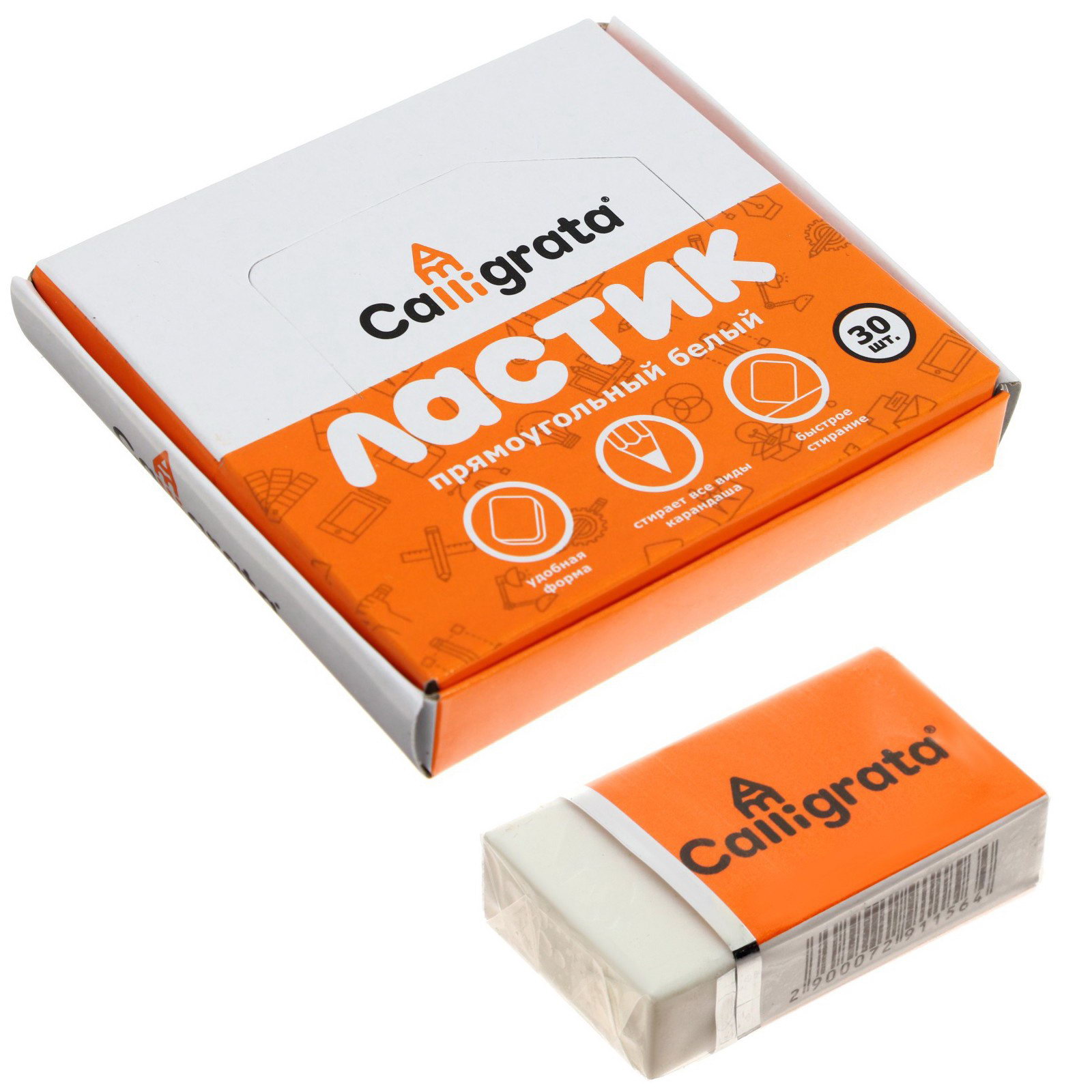 Ластик прямоугольный белый с бумажным держателем, Calligrata, Китай