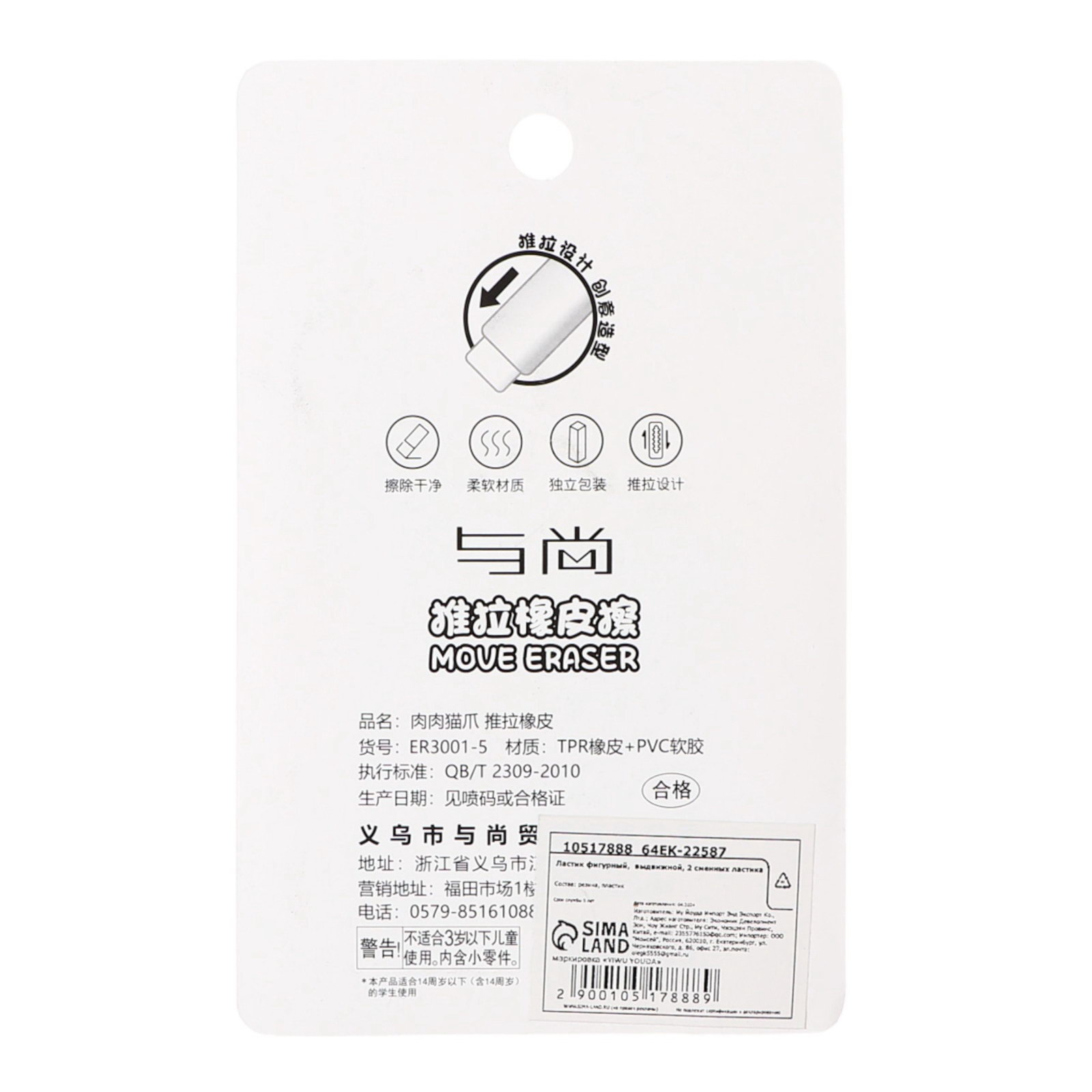 Ластик фигурный выдвижной "Лапка", 2 сменных ластика, фиолетовый, 14x8.6x2.4 см., Китай