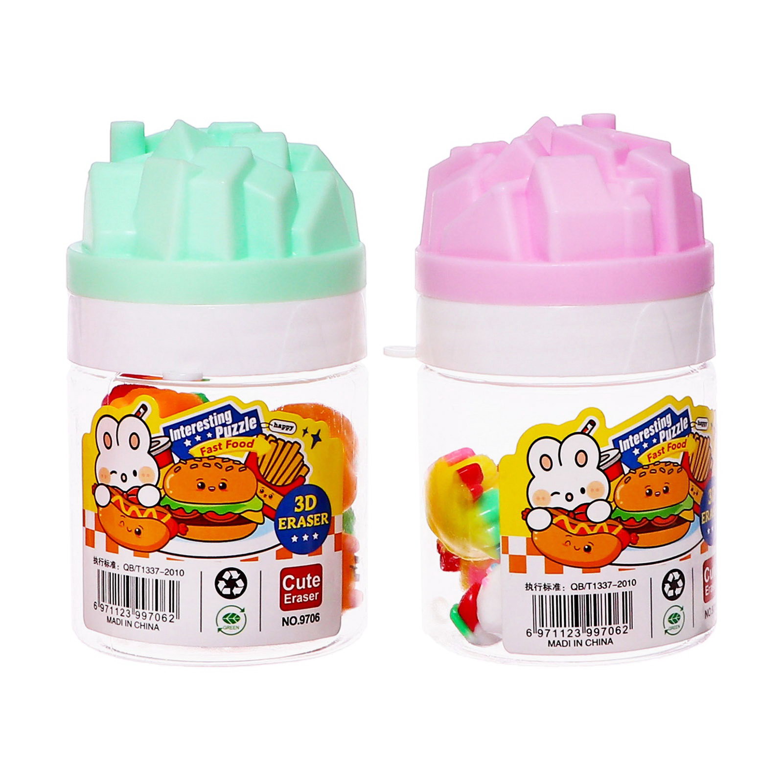 Набор ластиков фигурных, 8 штук, в пластиковой коробке, "Фастфуд", МИКС, 5.3x9.7x5.3 см., Китай