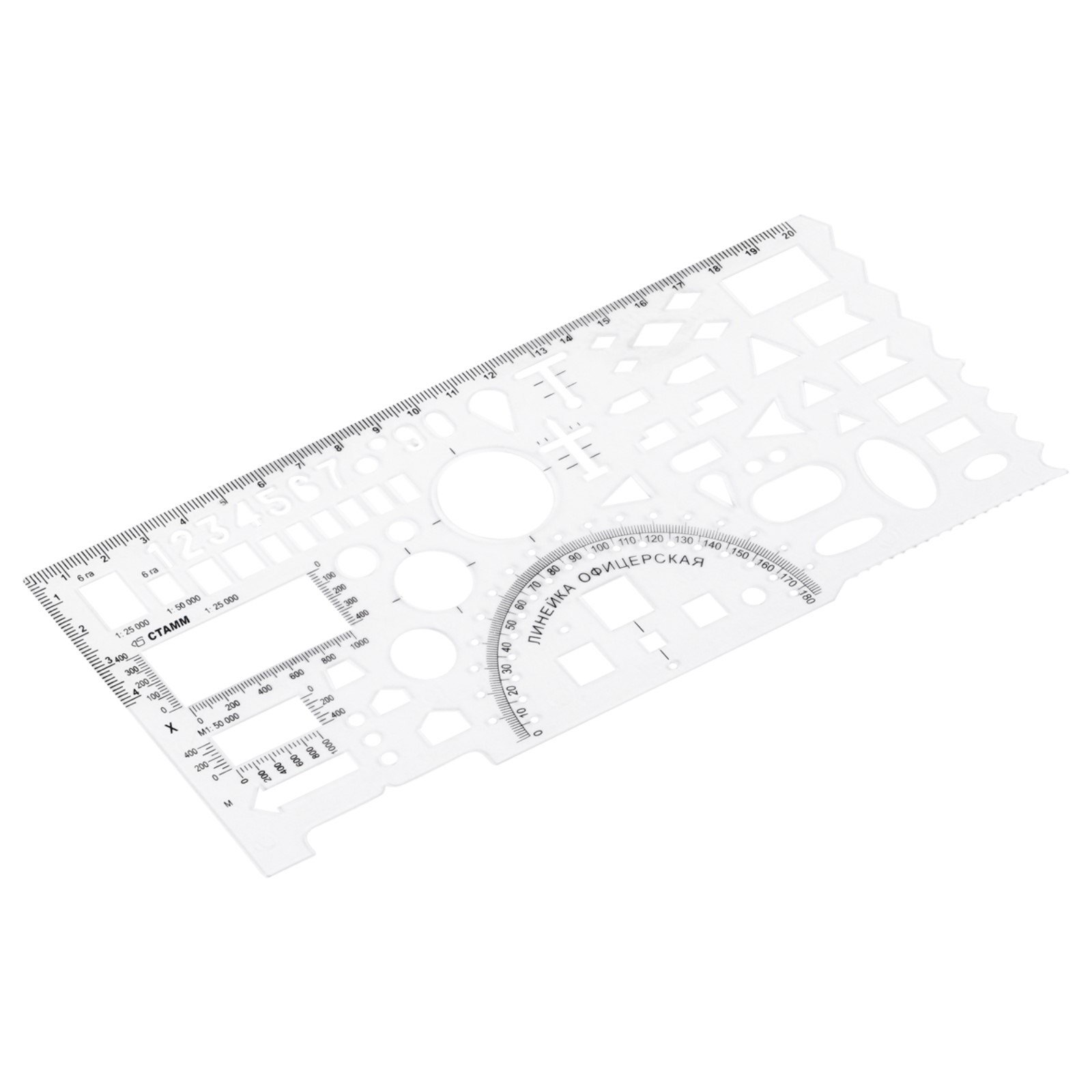 Линейка офицерская, бесцветная, печатная шкала, Стамм, Россия