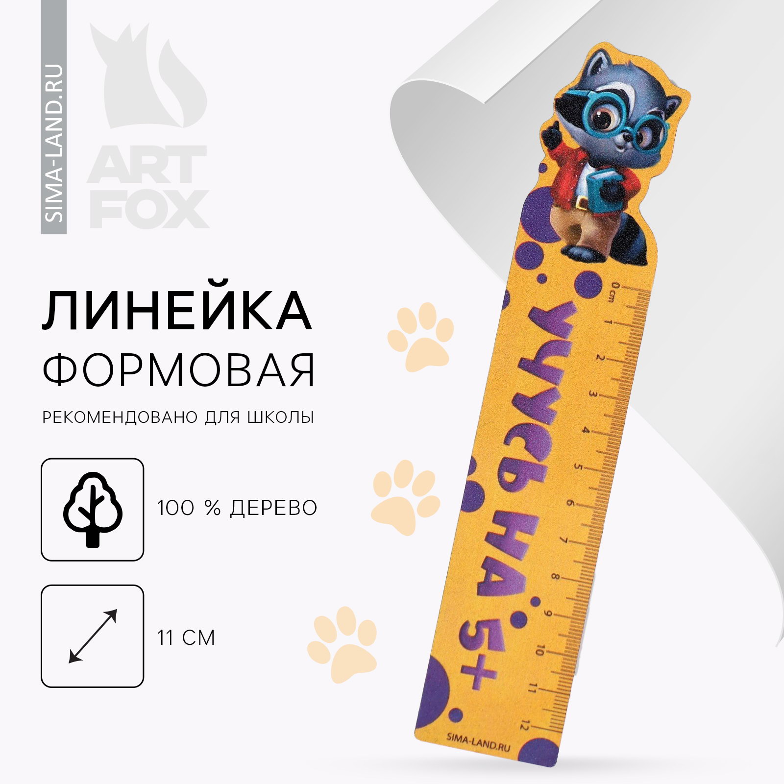 Линейка деревянная 15 см, фигурная "Учусь на 5 + ", ArtFox, Россия